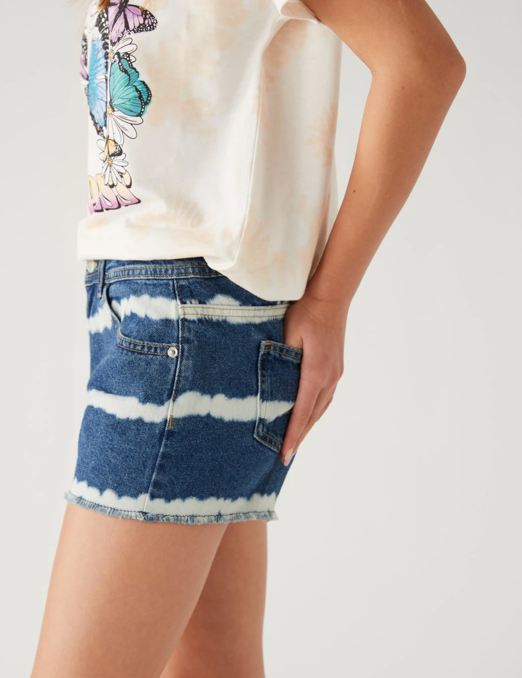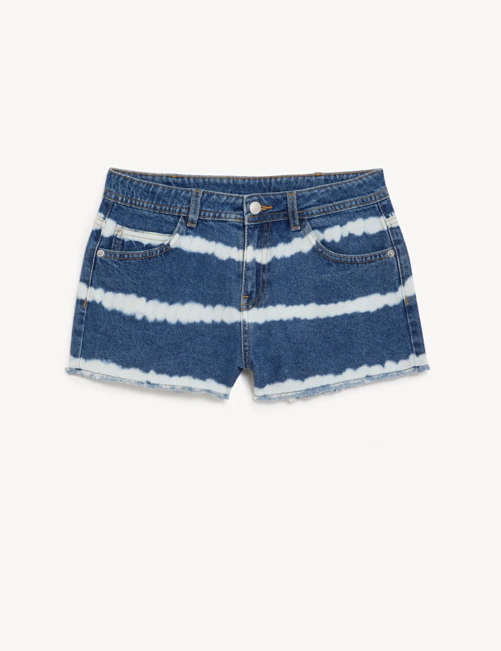 These pure cotton denim shorts have a lively tie-dyed finish. They’re cut in a comfortable regular fit. Classic denim features include visible stitching, rivets and belt loops. The shorts fasten with a traditional metallic button and zip.