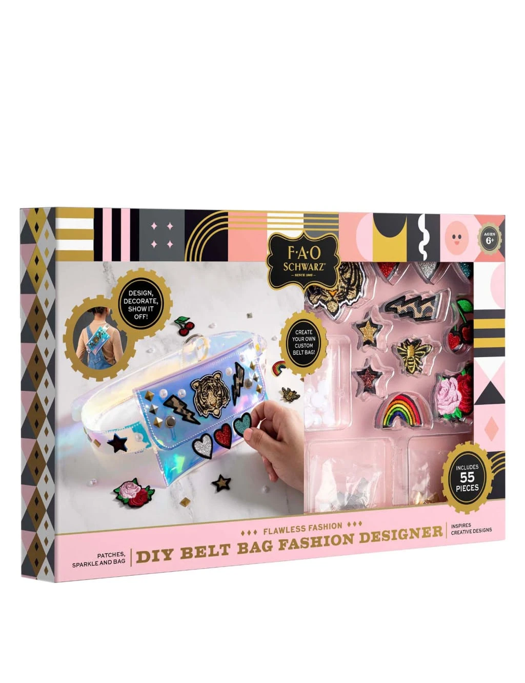 Budding fashion designers will love seeing their designs come to life with the DIY Belt Bag from FAO Schwarz. This creative kit includes a ready-to-wear holographic belt bag, plus 55 pieces of embellishment including patches and studs to make their bag totally unique. Suitable for children over 6 years.