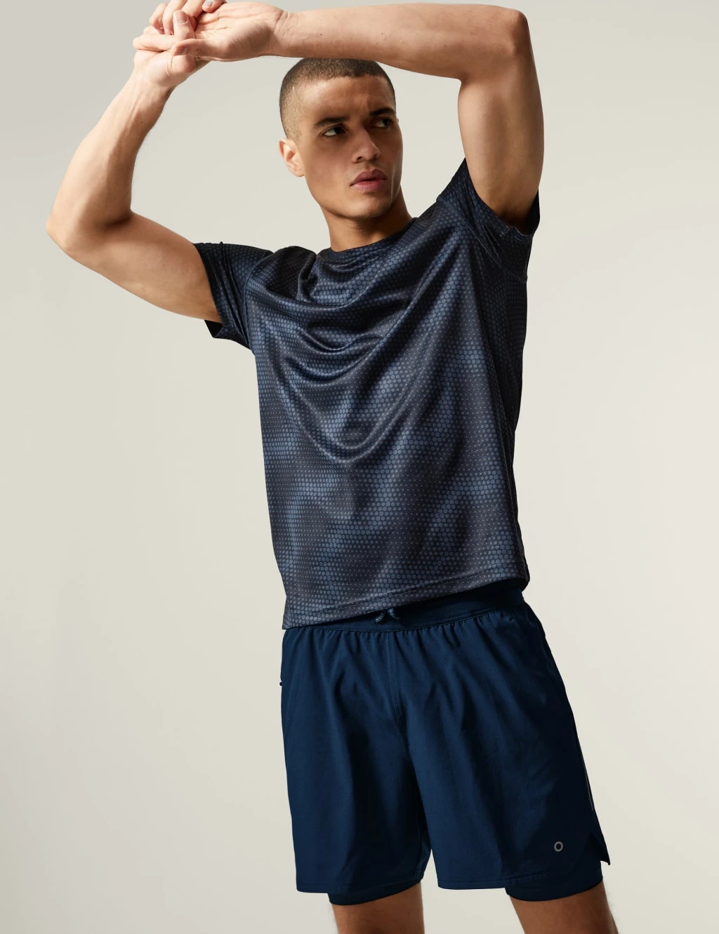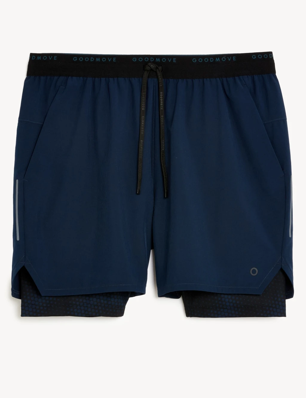 These Go Train, 2-in-1 layered shorts from our Goodmove collection are perfect for your next workout. They’re designed with Cool comfort™ technology, in a breathable stretch fabric that’s both moisture-wicking and quick-drying to keep you cool as you train. They sit above the knee and have an adjustable drawstring waist for comfort as well as subtle Goodmove branding. A concealed, secure pocket is perfect for storing keys, plus there’s an internal pocket for your phone. The Life Natural protective finish has antibacterial properties to keep you fresher for longer, while reflective detailing increases visibility. Made with recycled polyester.