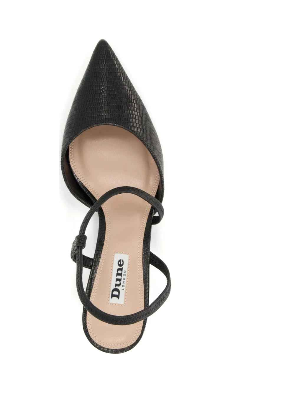 Complete your party outfit in shimmering style with these glittering court shoes from Dune. The striking design features a mid-height kitten heel and elegant pointed toe. An asymmetric strap provides an eye-catching finish.