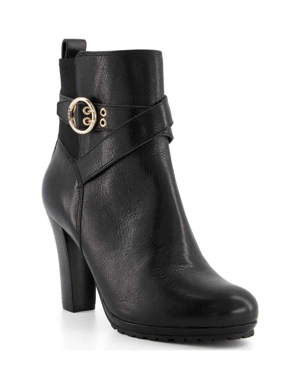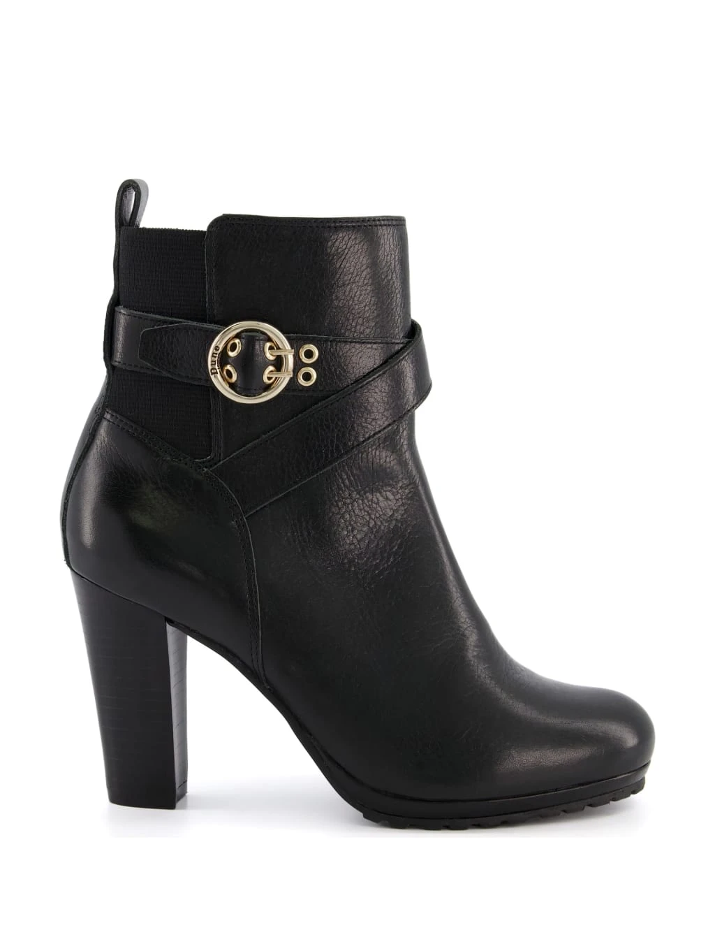 Finish any outfit in sophisticated style with these leather ankle boots from Dune. The block high heels feature a distinctive buckle for a premium look. Elastic panels around the heel help you to slip them on with ease, and there’s a discreet zip fastening on the side.