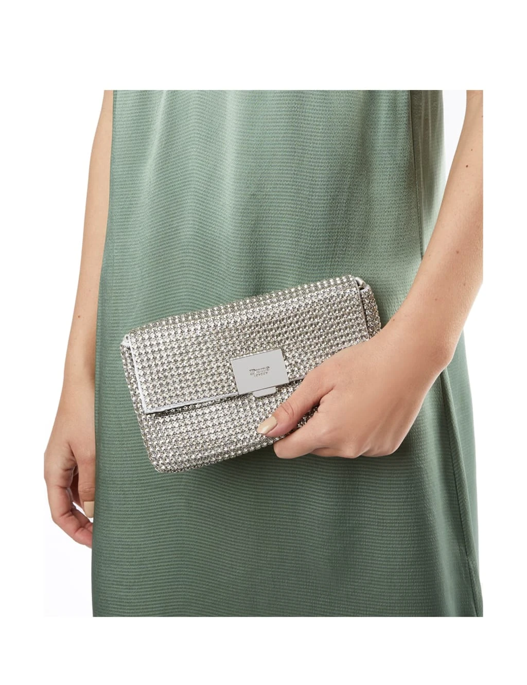 Complete your occasion outfit with this dazzling diamanté-embellished clutch from Dune. The metallic design is securely fastened with a branded clasp for a premium finish.
