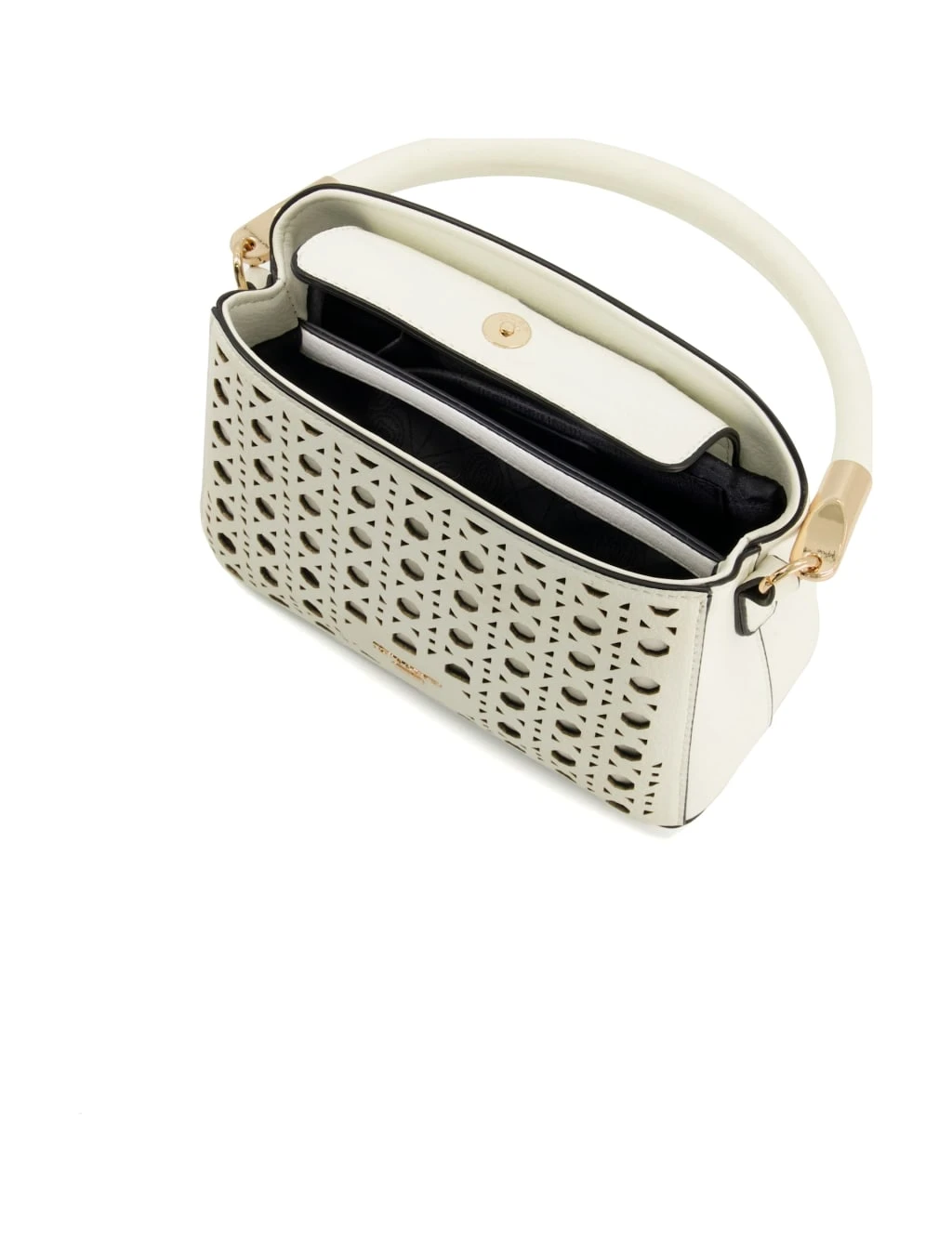 Add some refinement to your accessory collection with this mini cross-body grab bag from Dune London. It features two inner compartments and fastens with a simple magnetic clasp. Thanks to its top handle and an adjustable shoulder strap, you can easily take it from day to night. The design is complete with laser-cut detailing and polished rose gold-look hardware for an elegant touch.