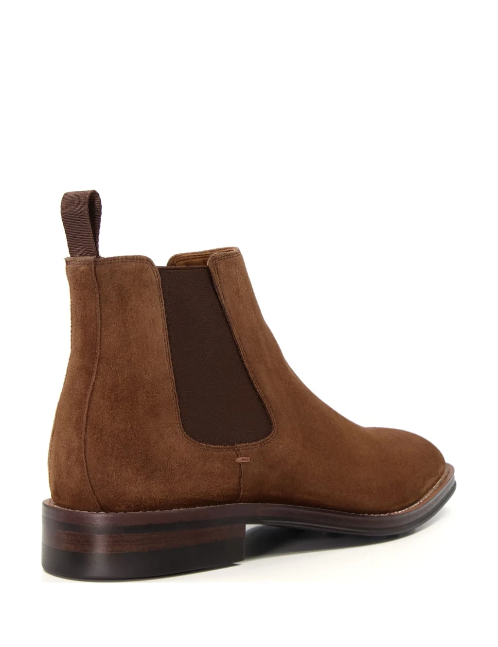 Go for a timelessly stylish look with these suede Chelsea boots from Dune. They feature a traditional rounded toe and elastic sides. The low block heel is rendered in dark stained wood, lending a smart, polished finish.