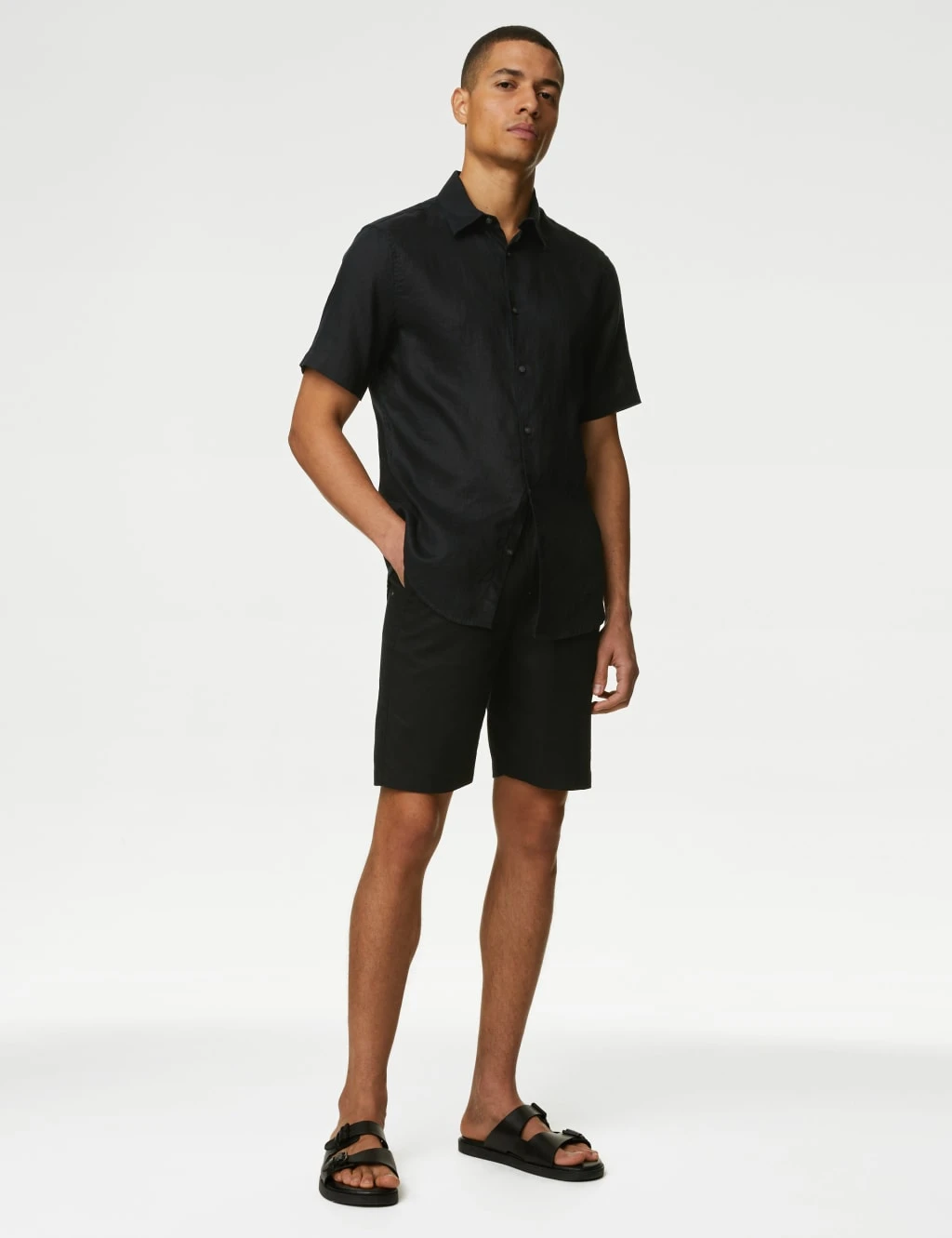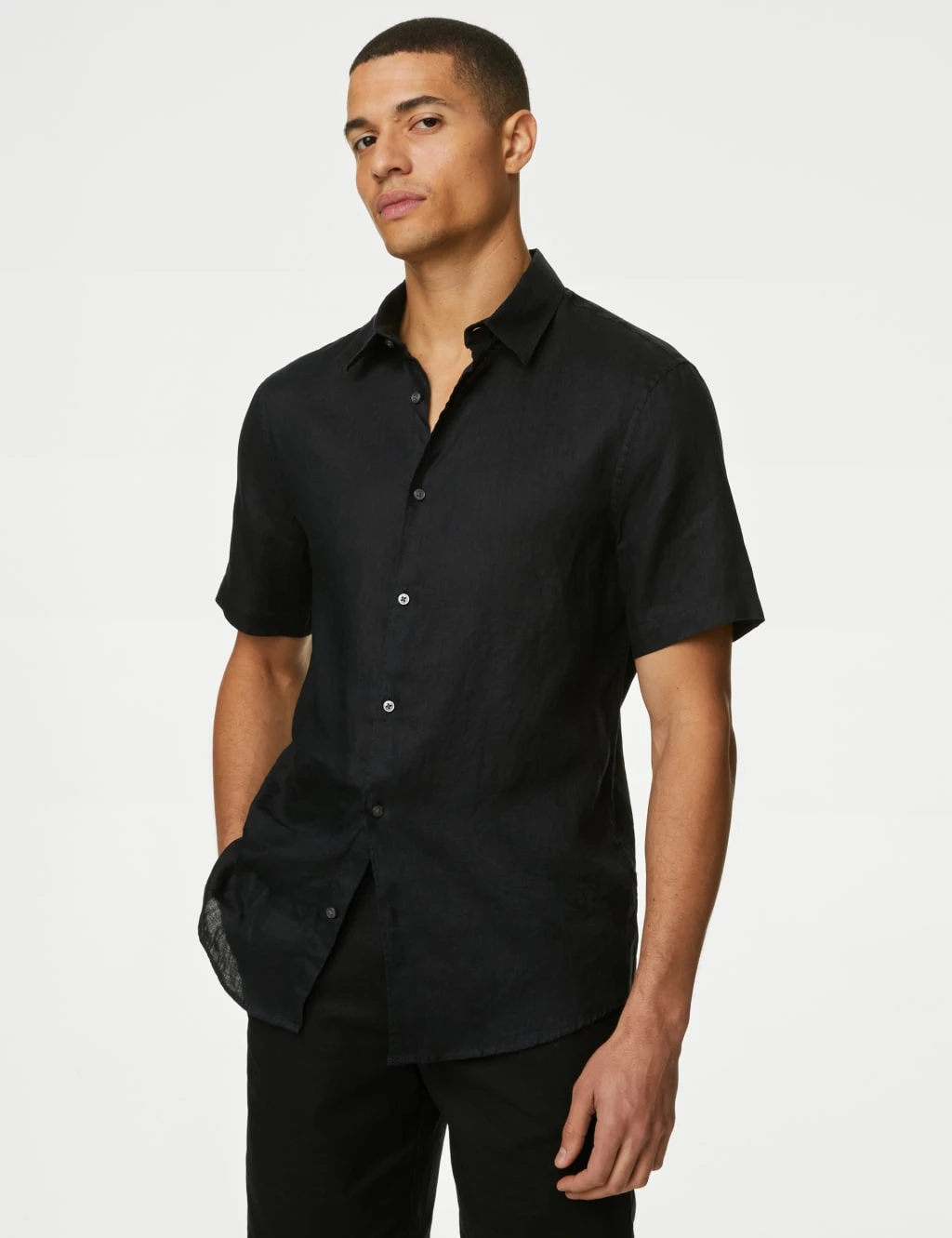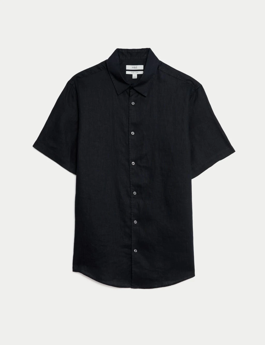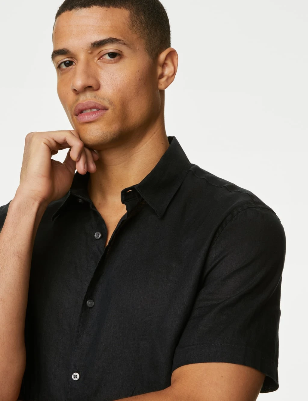 Reach for this pure linen shirt as soon as the weather begins to warm up. Made in a comfy regular fit with short sleeves and a classic collar. The fabric draws moisture away from the skin to keep you looking and feeling fresh. An easy-to-iron finish makes getting ready simple. M&S Collection: easy-to-wear wardrobe staples that combine classic and contemporary styles.