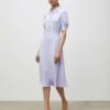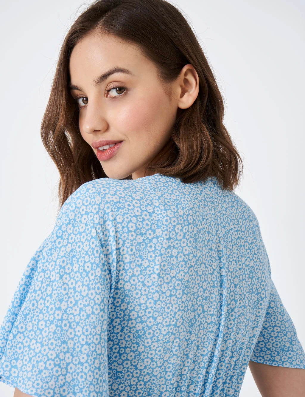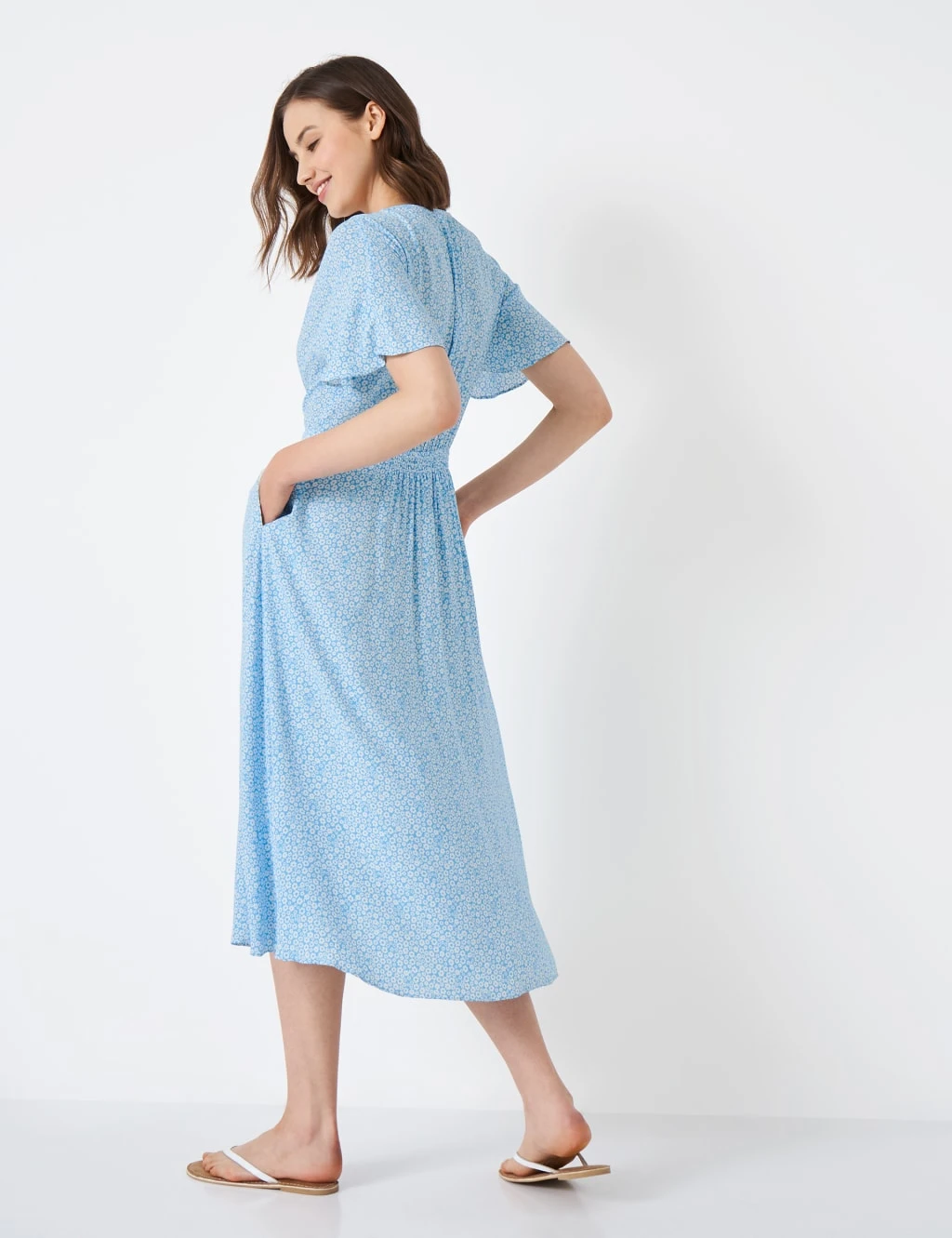 For effortless seasonal style, choose this fresh floral tea dress from Crew Clothing. This v-neck piece is cut in an easy regular fit, with button-through fastenings and delicate angel sleeves. Shirred detail at the waist creates a flattering silhouette, while the midi-length skirt is full of breezy movement.
