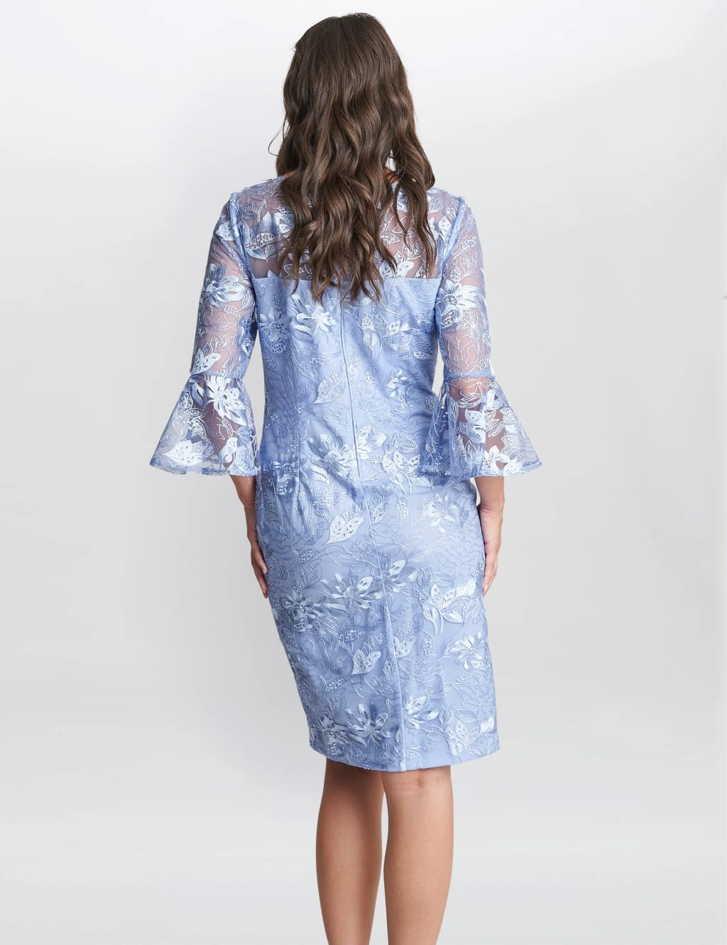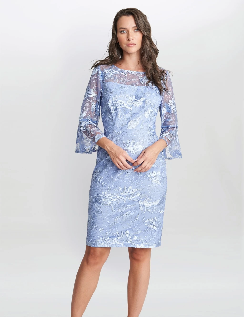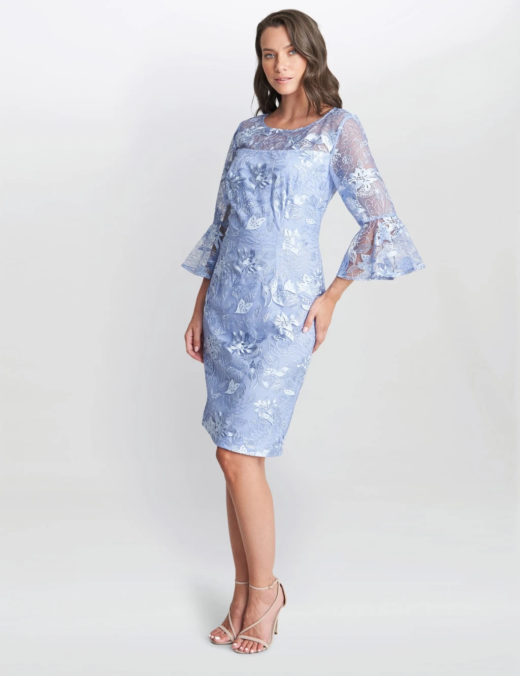 It’s all in the romantic detail with this occasion dress from Gina Bacconi. It’s cut to a regular fit and features a round neck and a knee-length hem. With its fluted, three-quarter sleeves and all-over embroidered floral lace, this feminine shift style will stand out from the rest. It’s finished with a neat zip fastening at the back.