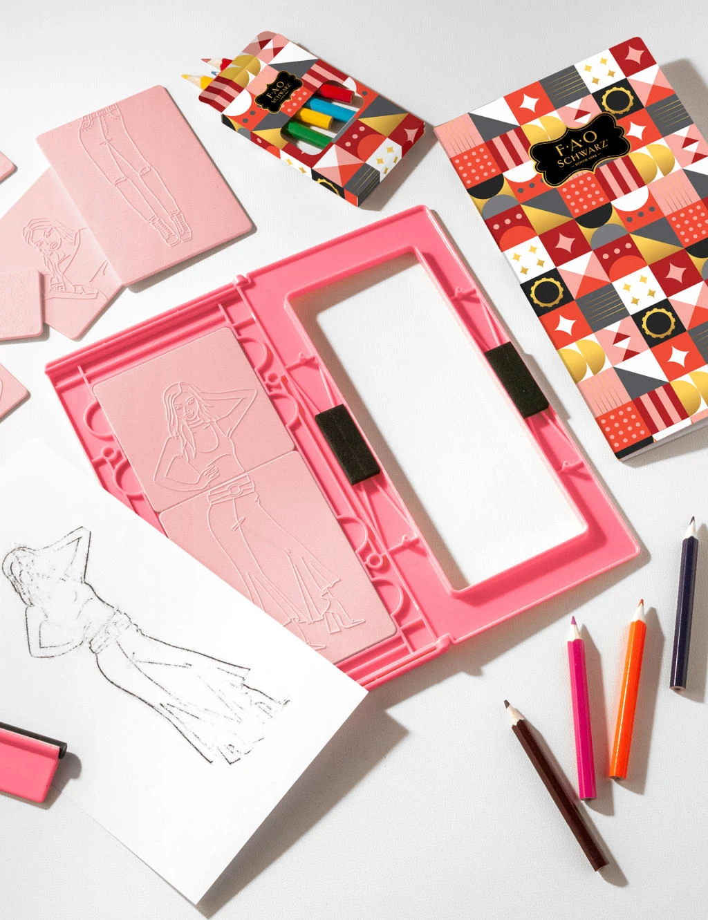 Young fashionistas will fall in love with this designer art set from FAO Schwarz. With 15 fashion plates and colours, they can create one-of-a-kind outfits and then showcase their designs. Suitable for children over 8 years.