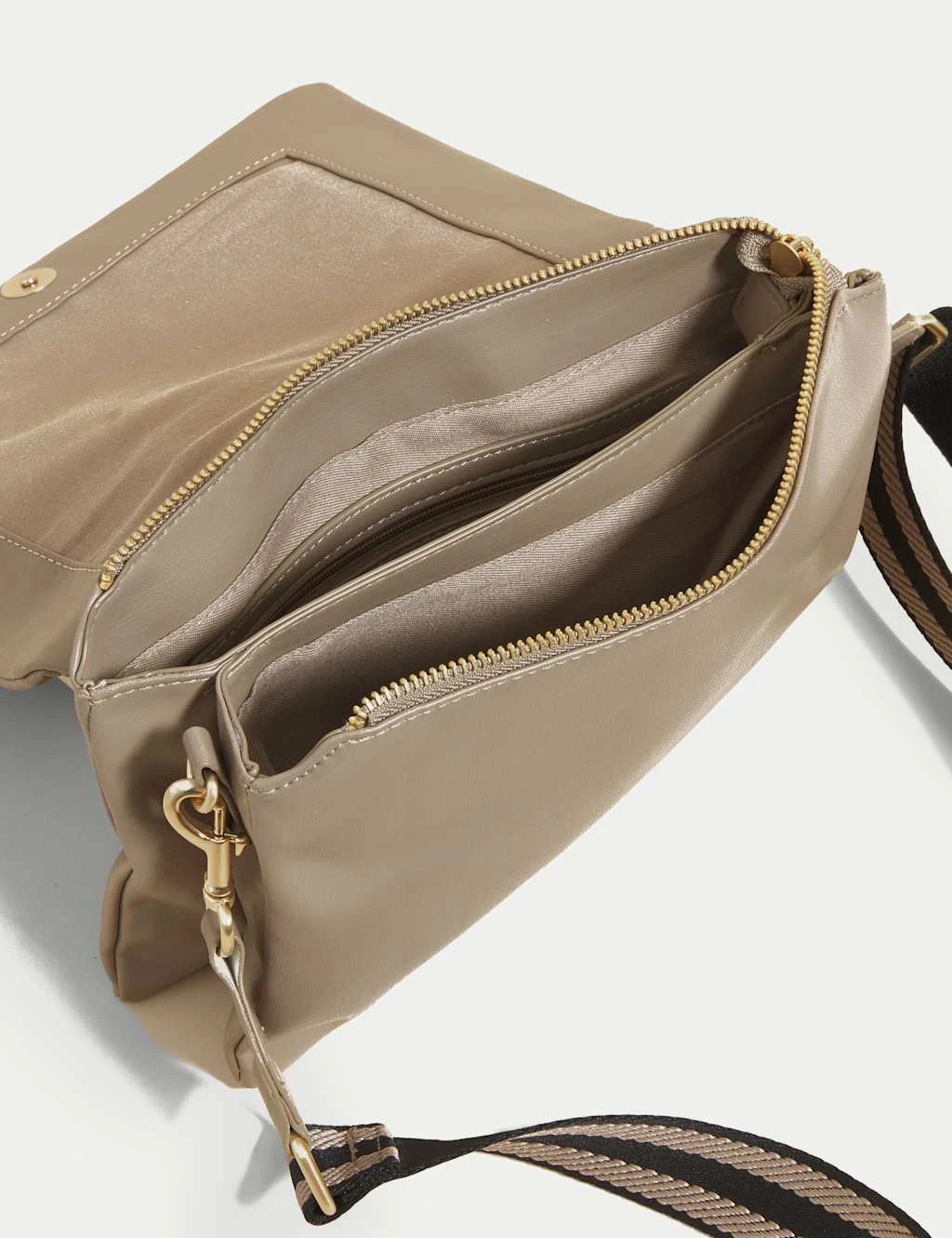 Made from soft and buttery faux leather, this cross body messenger bag has a truly luxurious feel. Adjustable and detachable webbing straps. Flap-over design with a magnet fastening to keep your daily essentials secure. Two internal compartments with zip fastenings, as well as an internal zipped pocket and an internal slip pocket for your phone or purse. M&S Collection: easy-to-wear wardrobe staples that combine classic and contemporary styles.