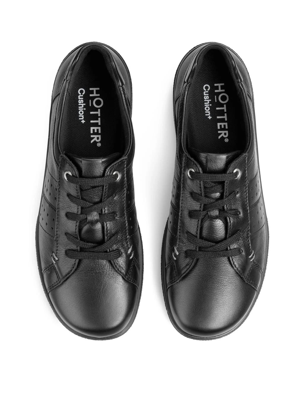 Choose supreme comfort on casual days with these leather shoes from Hotter. This lace-up pair is designed in a classic regular fit with a flat heel and a chunky silhouette. Cushion+ technology uses a clever design to save your energy and minimise fatigue while offering all-day comfort. Perforated detailing on the sides adds bonus style points and breathability.