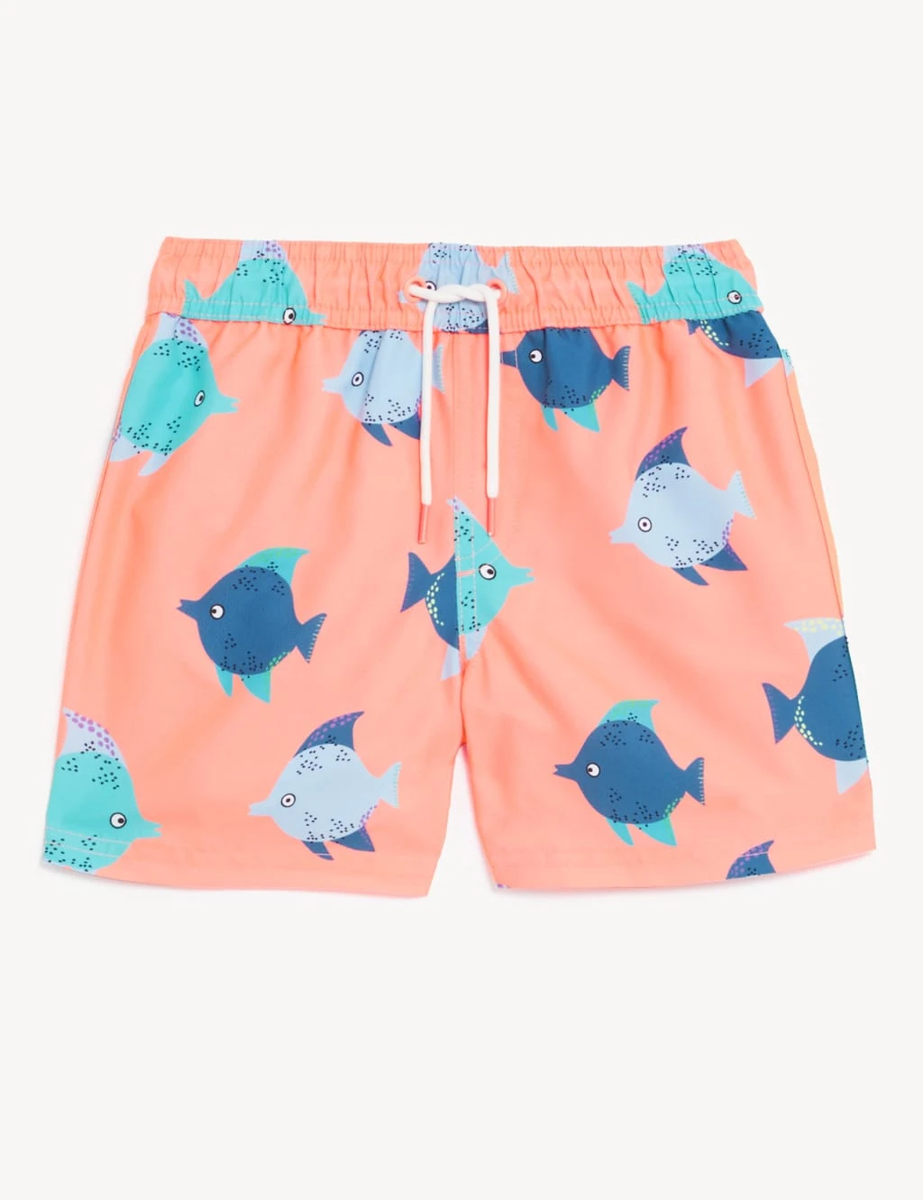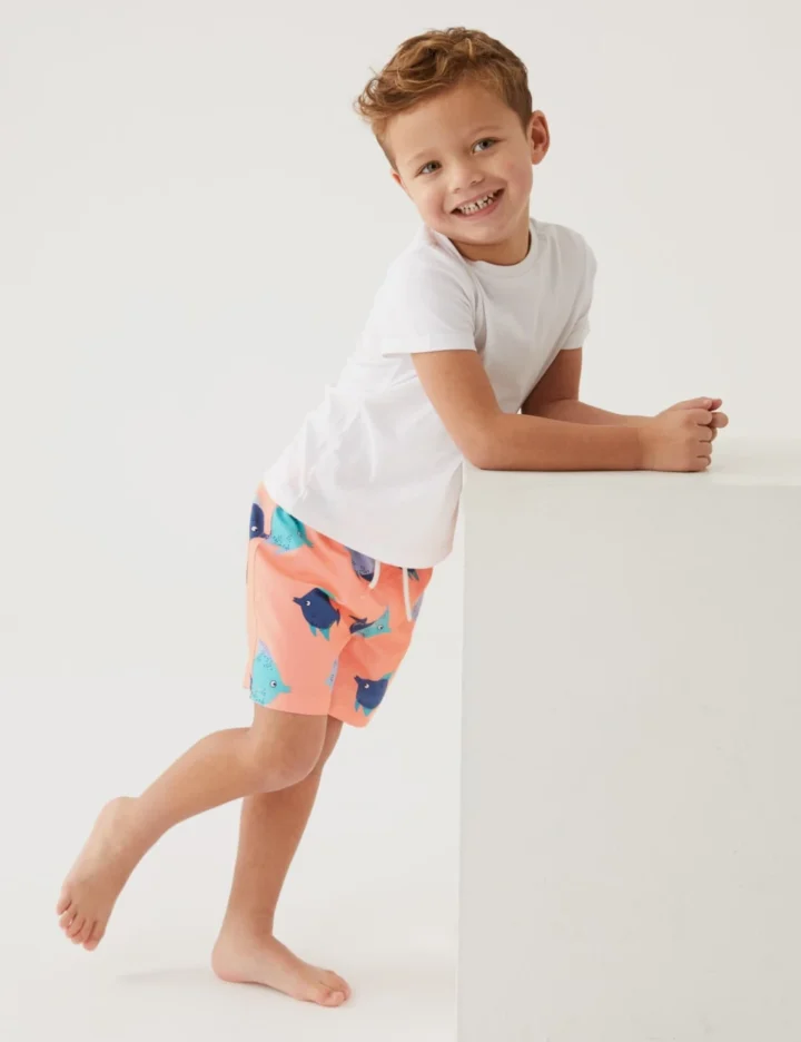 Little ones will be ready to make a splash in these adorable fish print swim shorts. They’re cut in a regular fit with a comfy elasticated drawstring waist. Crafted from lightweight fabric with UPF50+ sun protection endorsed by the British Skin Foundation to help keep them safe in the sun.