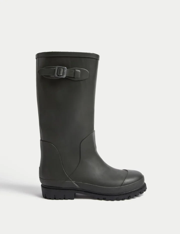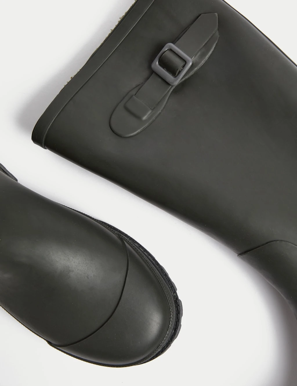 Tackle muddy terrain in style and comfort with these fleece-lined wellington boots. The generous fit allows room for thick socks on colder days. A buckle at the top helps keep out the rain.