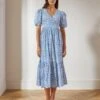 With its fluttery angel sleeves and bright floral print, this Nobody’s Child tea dress is perfect for sunny days. It’s cut in a flattering fitted shape, with a tie at the back to cinch in the waist. A scoop neckline gives the piece a modern feel, while the midi-length skirt features a side split for extra floaty movement.