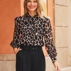 Floral Crew Neck Shirred Long Sleeve Blouse