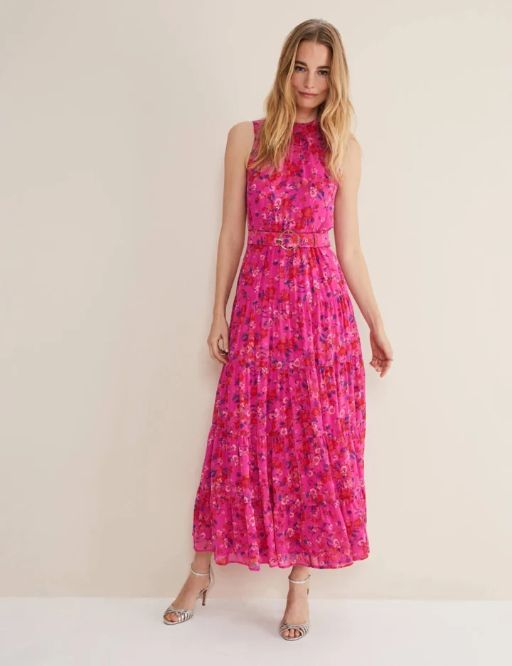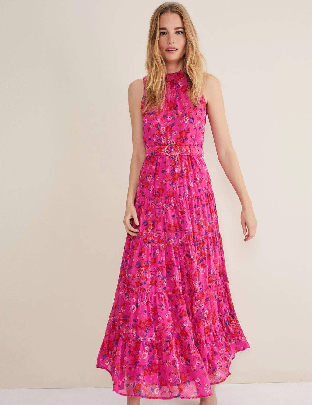 Bring a floral flourish to a big occasion with this maxi dress by Phase Eight. It’s crafted in a regular fit, and features an adjustable belt at the waist for a flattering shape. Tiers through the skirt create playful movement, while a high neck offers an elegant touch. This summer-ready piece is cut in a breathable sleeveless style and is fully lined for comfort.