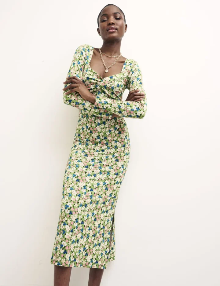 Bring a standout feel to your wardrobe with this striking floral dress from Nobody’s Child. It’s cut in a fitted shape, to a bodycon silhouette for a flattering effect. Long sleeves give extra coverage, while the sweetheart neckline with twist detailing adds interest to the bodice. A side split in the midaxi-length hemline ensures easy movement.