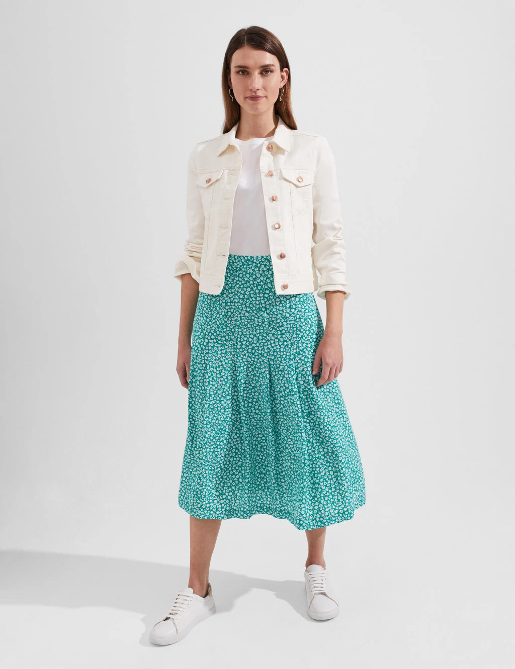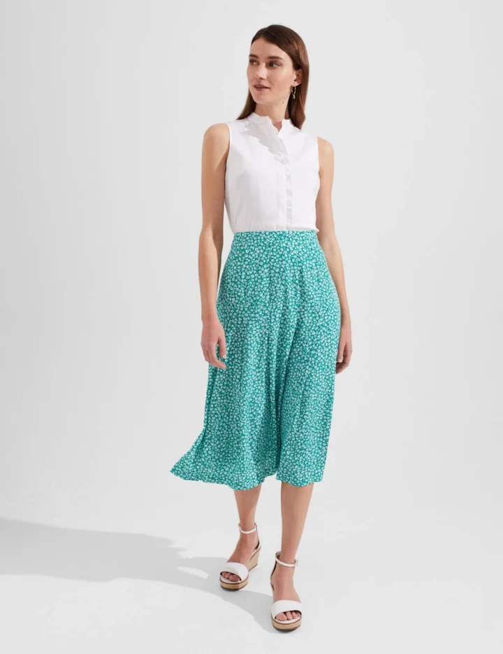 Sunny days call for this effortlessly stylish floral midi skirt from Hobbs. The regular-fit style is made to an A-line silhouette and fastens at the back with a neat zip. It’s complete with loose pleats running from the thigh to the hem, which add elegant movement to this versatile piece.