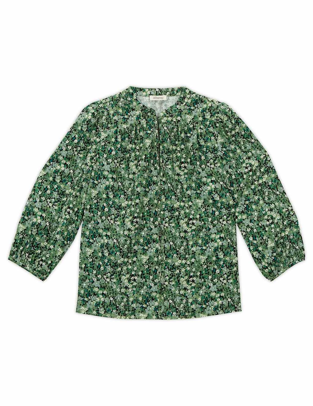 With its delicate floral design, this versatile blouse from Albaray is sure to become a favourite. The round-neck design is cut in an elegant regular fit with button fastenings. Subtle gathered detailing at the shoulders and cuffs adds a hint of volume to the three-quarter length sleeves.