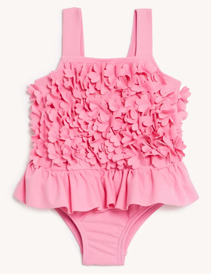 This sweet swimsuit is decorated with 3D flowers and a sweet ruffled skirt. The chlorine-resistant fabric is made with added stretch for a comfortable feel. Its Sun Smart finish, endorsed by the British Skin Foundation, helps to protect little ones against harmful UV rays.