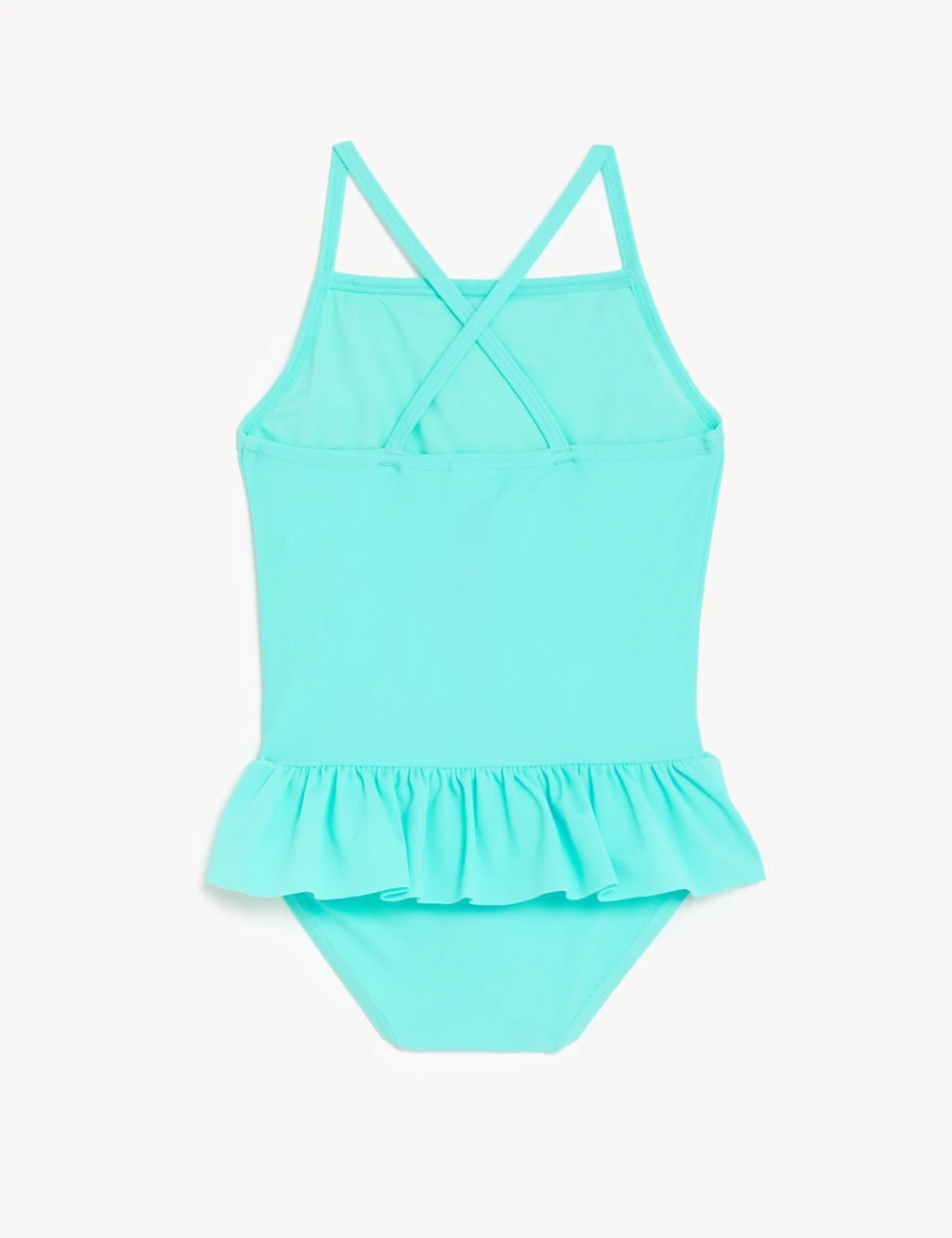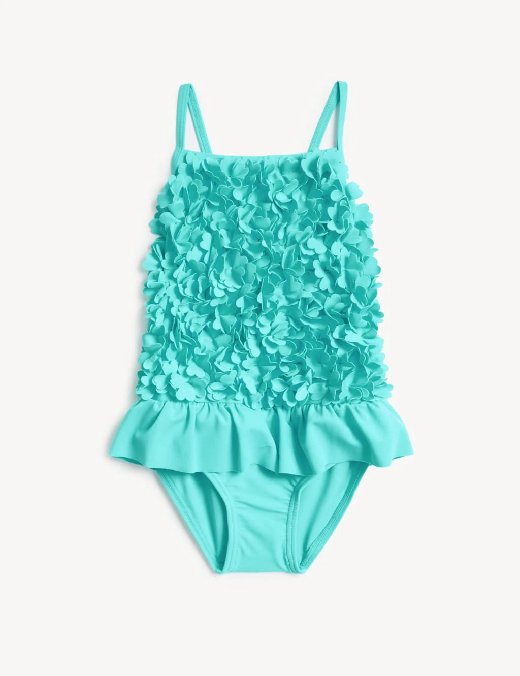 This floral appliqué swimsuit creates a pretty poolside look. Regular fit and lined for comfort. Ruffle detail around the middle for an extra playful flourish. Made from UPF50+ Sun Smart fabric, which is endorsed by the British Skin Foundation to help keep the sun’s harmful UV rays at bay. The chlorine-resistant fabric means it’ll stay looking newer for longer.