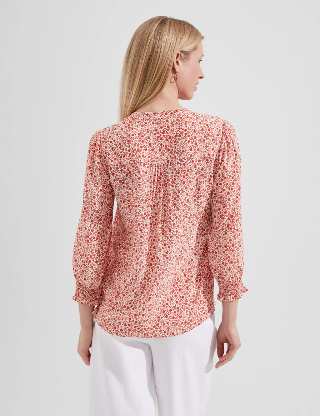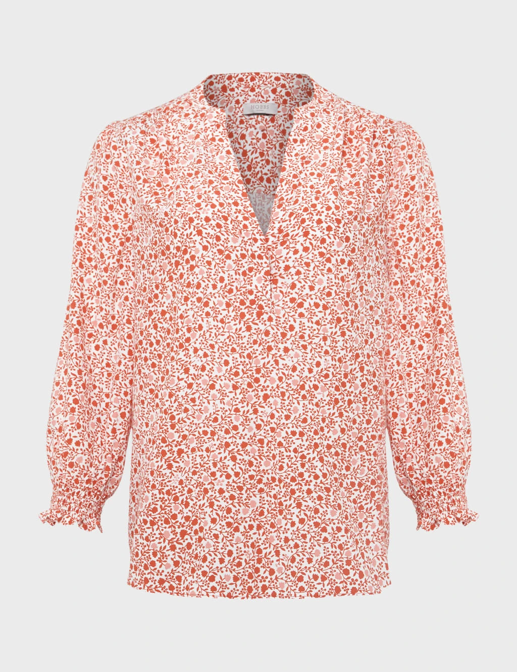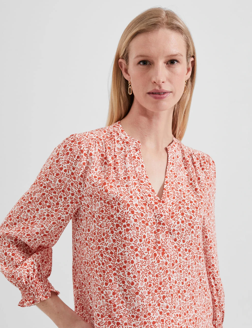 With its delicate floral print, this pretty blouse by Hobbs will bring effortless style to your work or weekend wardrobe. It’s cut in a regular fit with a flattering v-neckline. The three-quarter blouson sleeves provide elegant coverage, while shirring on the cuffs adds feminine charm to this versatile piece.