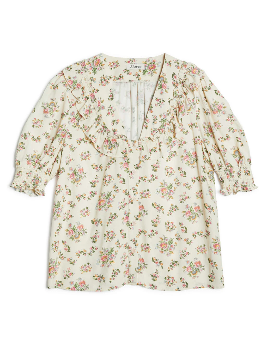 With its traditional floral print, this Albaray blouse will bring a dose of romantic charm to your smart-casual looks. It’s cut in a regular fit with a front button fastening. The short sleeves are shirred for a touch of volume, while frill detailing on the collared v-neckline adds to the feminine feel.