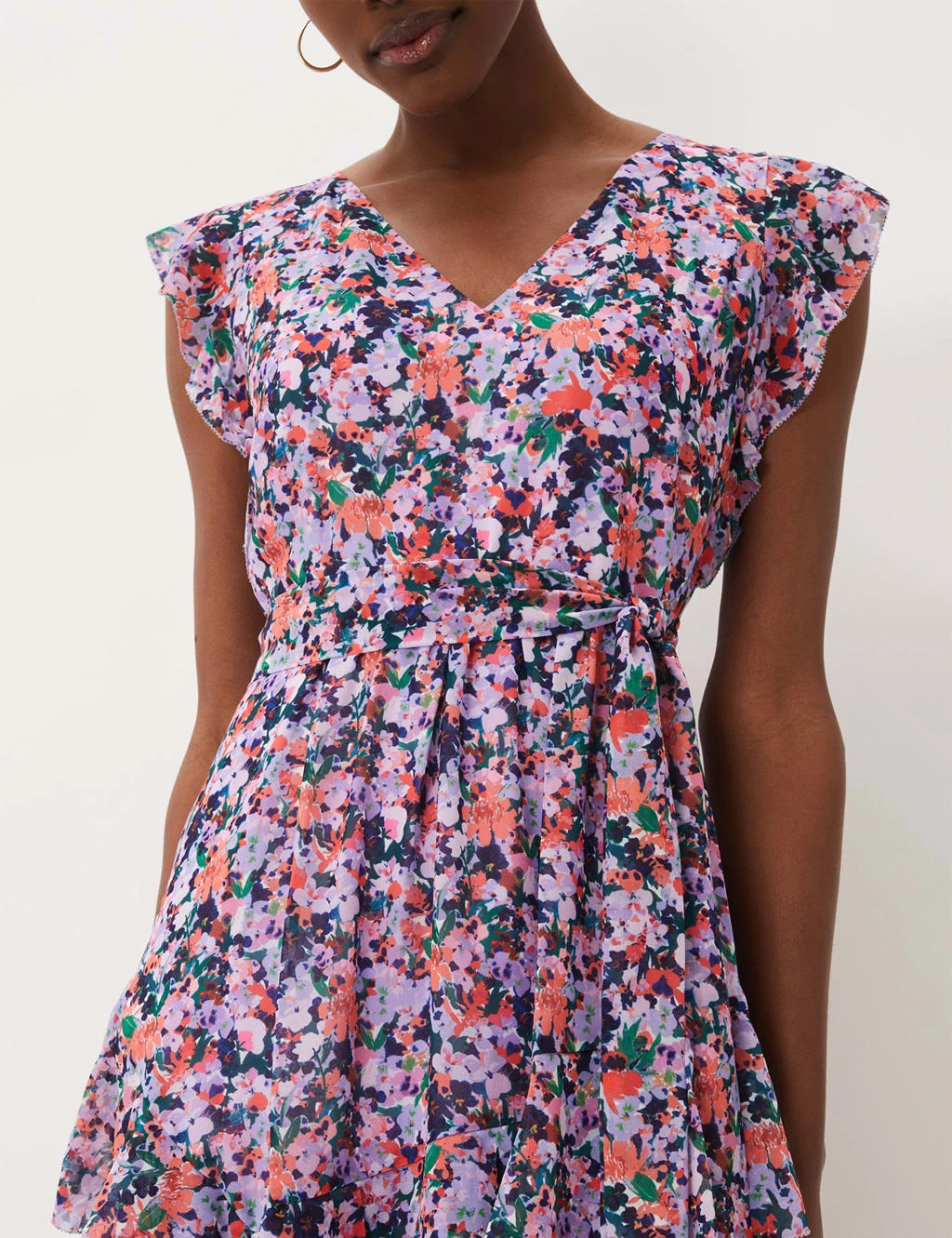 This floral dress from Phase Eight is perfect for your summer RSVPs. Cut to a flattering regular fit, it features a v-neck and short frilled sleeves which add to the feminine feel. A matching waist tie enhances the silhouette, while the tiered knee-length skirt adds a fun finish. This style fastens with a concealed back zip fastening. Made with recycled polyester.