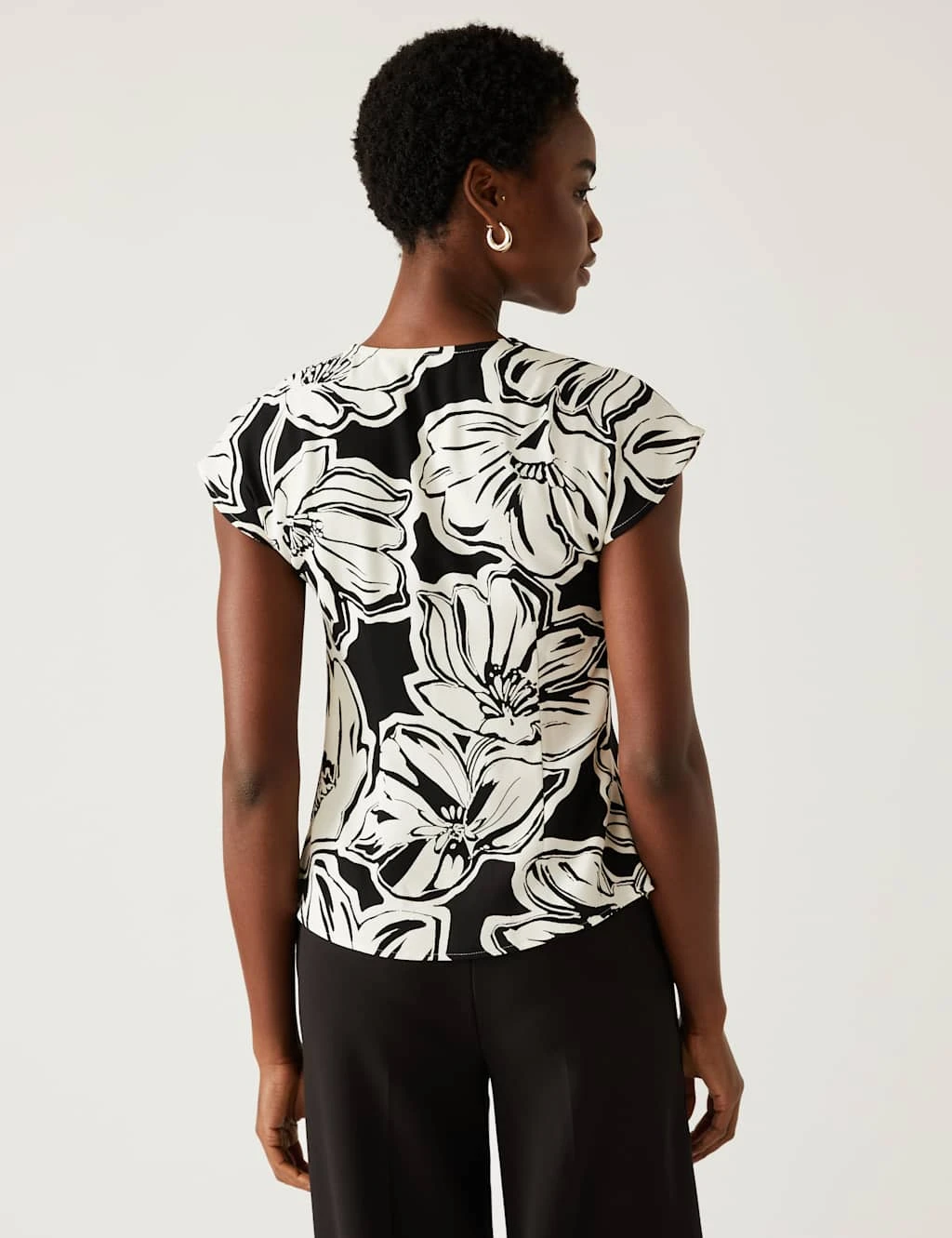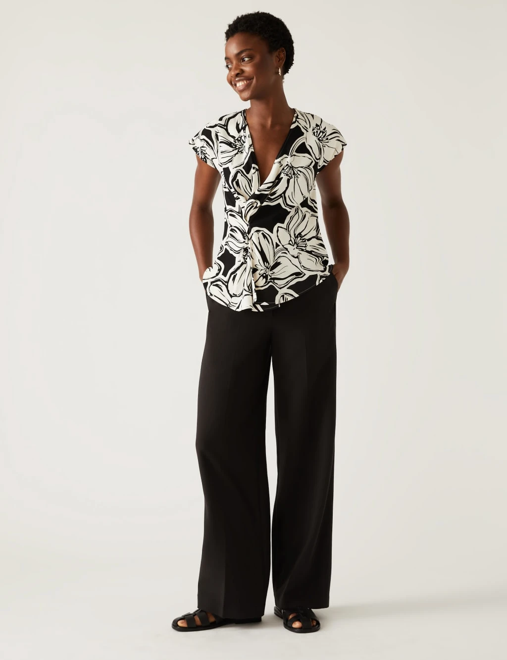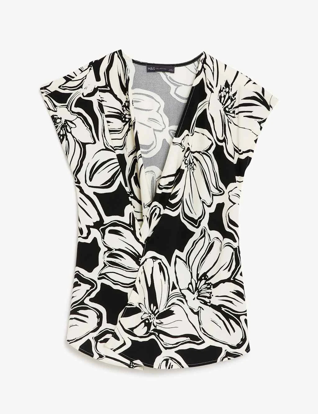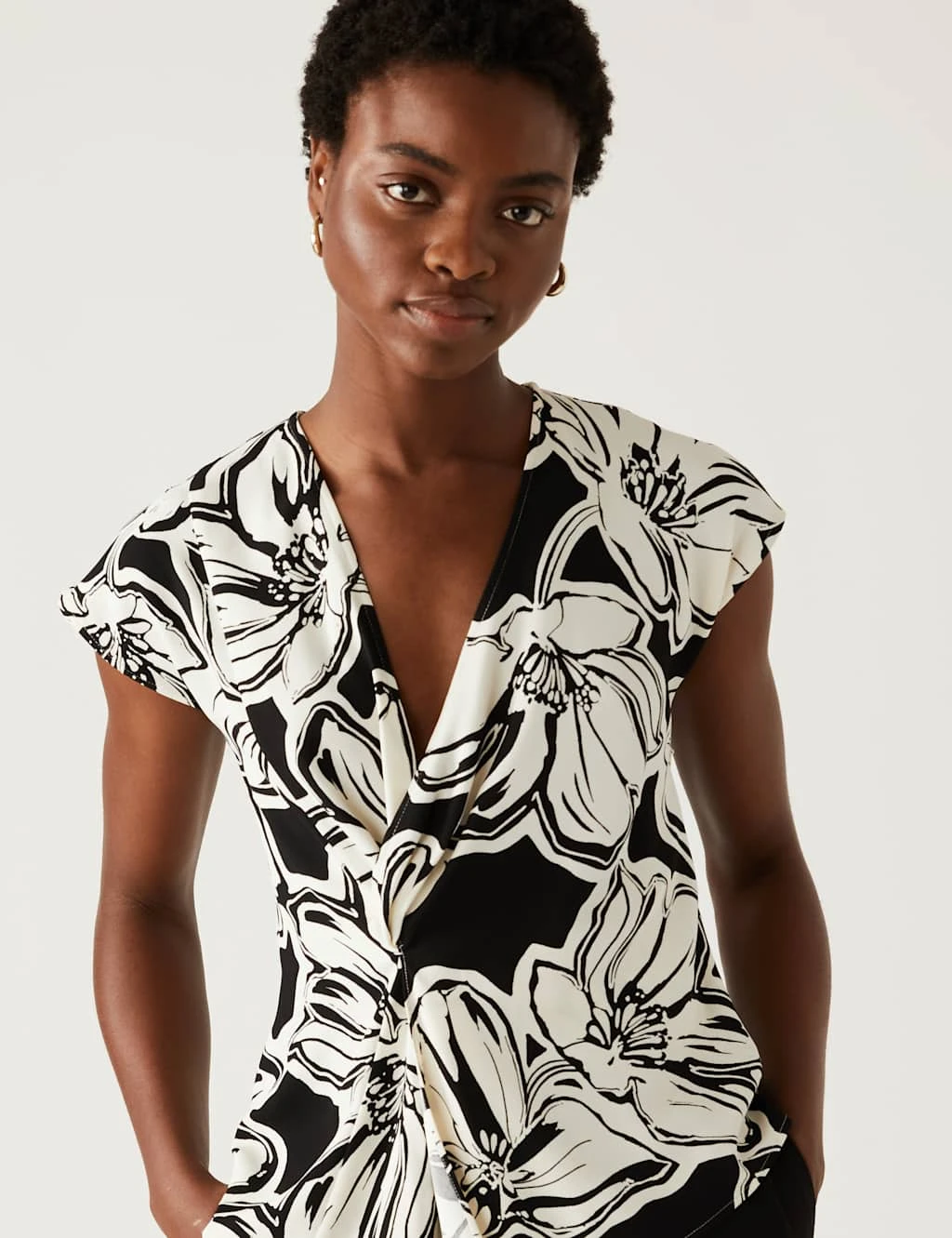 With its bold floral motif, this blouse makes a striking focal point for your ensemble. This sleeveless style is cut to a comfy regular fit, with a deep v-neckline and a knot front fastening so you can adjust the silhouette to suit.