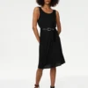 Go for a bold look with this abstract-print tea dress from French Connection. It’s cut from lightweight crepe fabric and features a fitted belted waist. The flowing skirt falls to a flattering midi length. Further details include the short fluttery sleeves, v-neckline and neat buttons through the front.