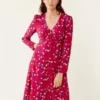 French Connection Floral V-Neck Tie Detail Midi Wrap Dress