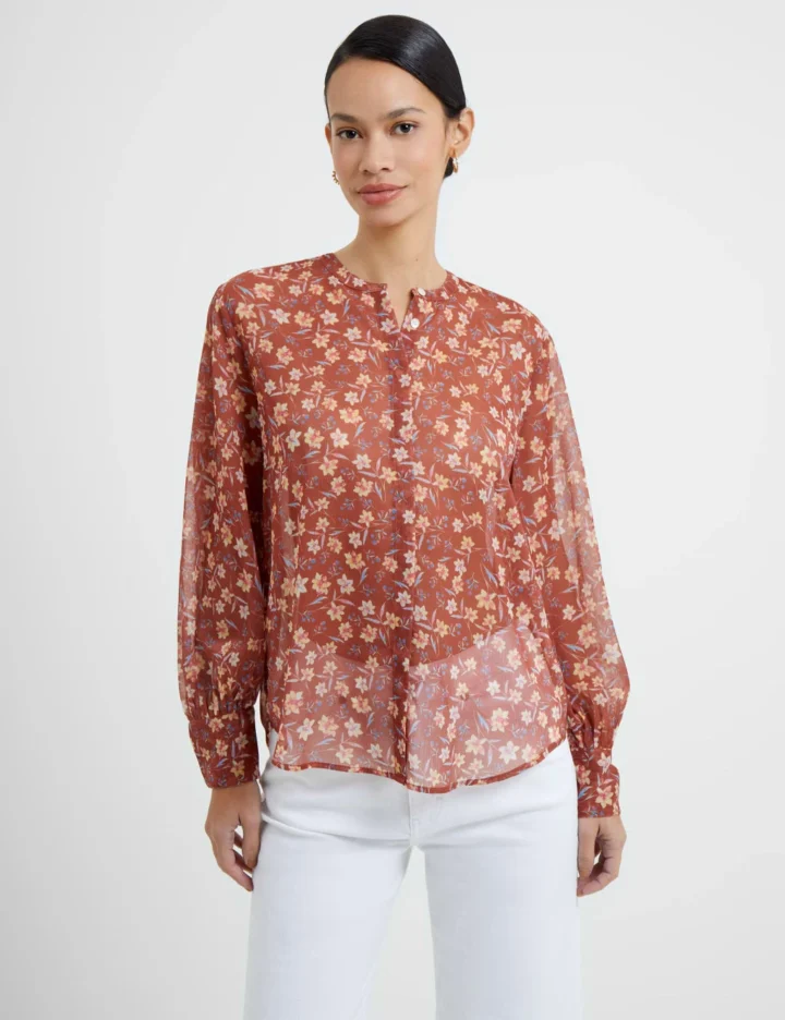 Channel ethereal style in this sheer floral shirt by French Connection. It’s cut in a relaxed fit with a classic crew neck and features concealed buttons through the front for a clean look. The long sleeves gather into buttoned cuffs for a touch of volume.