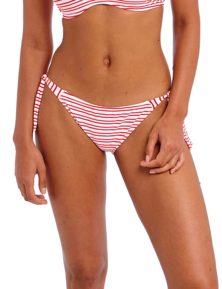 These striped bikini bottoms from Freya have a timeless, nautical look. Designed to sit low on the hips, they feature adjustable scarf ties on the sides so you can find your ideal fit. The bottoms offer medium coverage for more modesty and are crafted with Lycra® Xtra Life™ fabric that is resistant to degradation by chlorine.