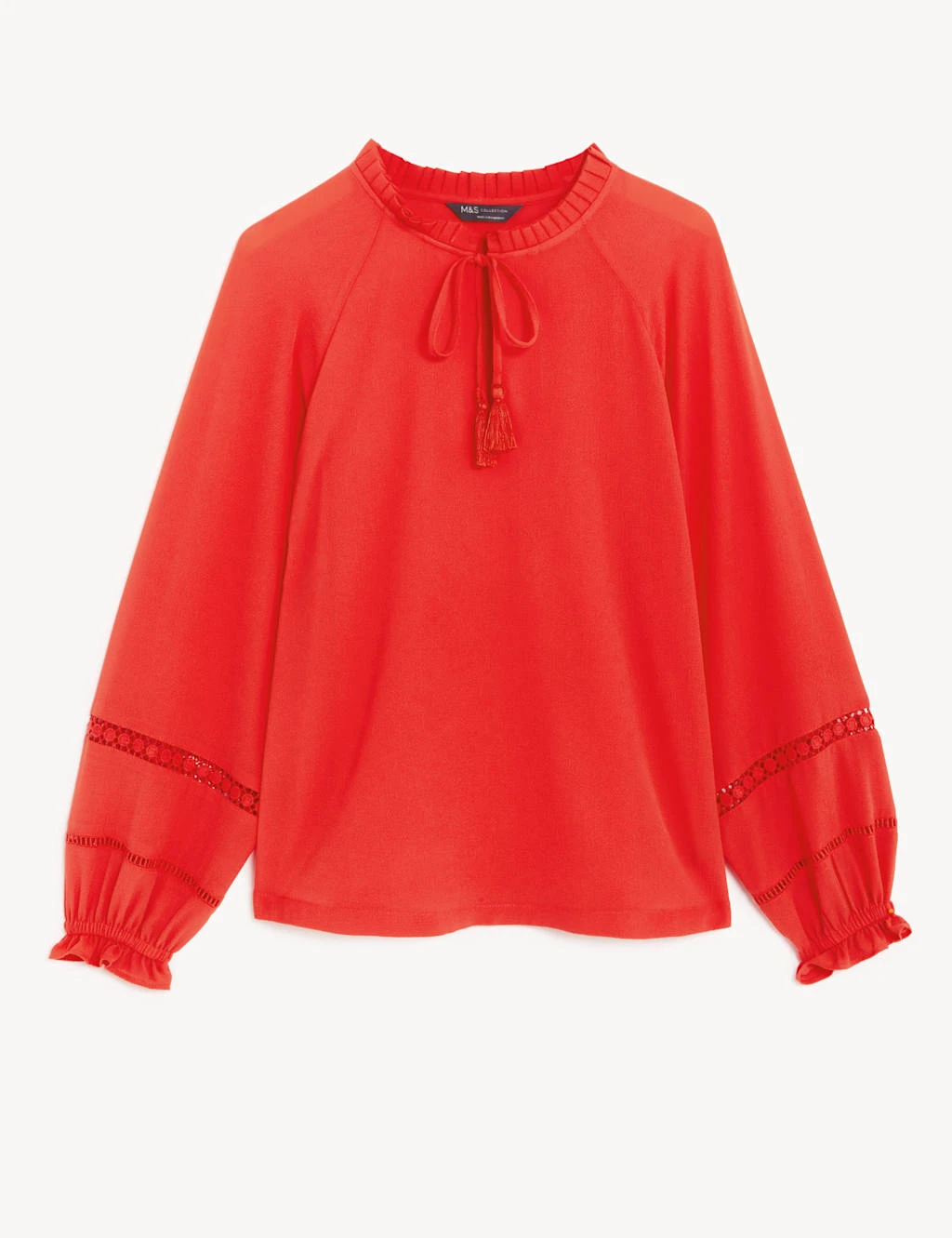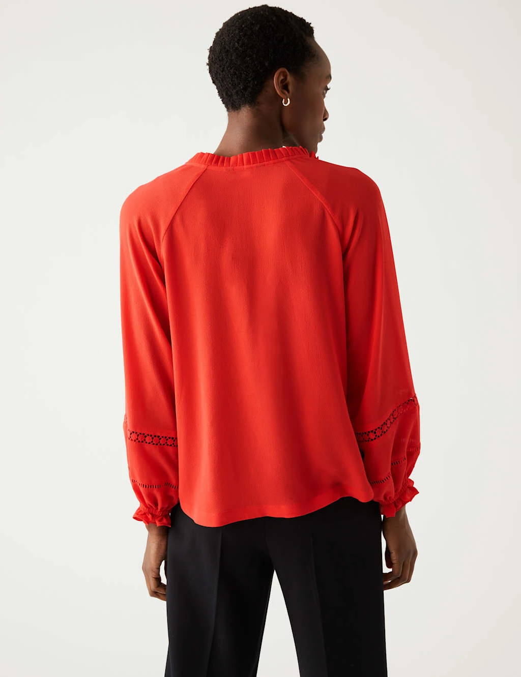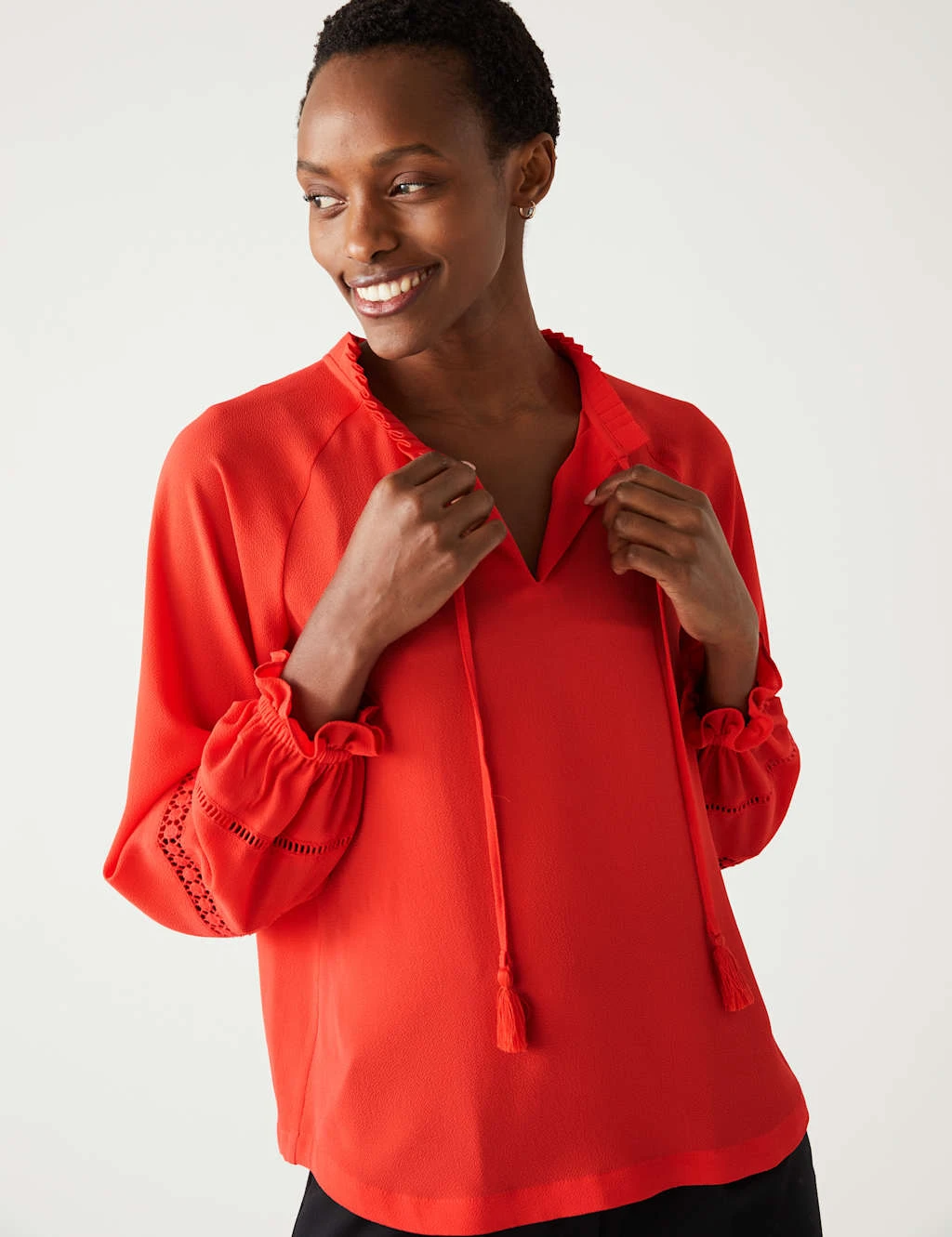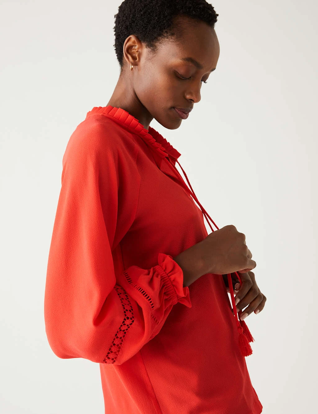 Perfect for work or play, this frill neck blouse adds a simple statement to your look. Designed in a regular fit with added stretch for comfort. Featuring an attractive frill collar with tie detailing.