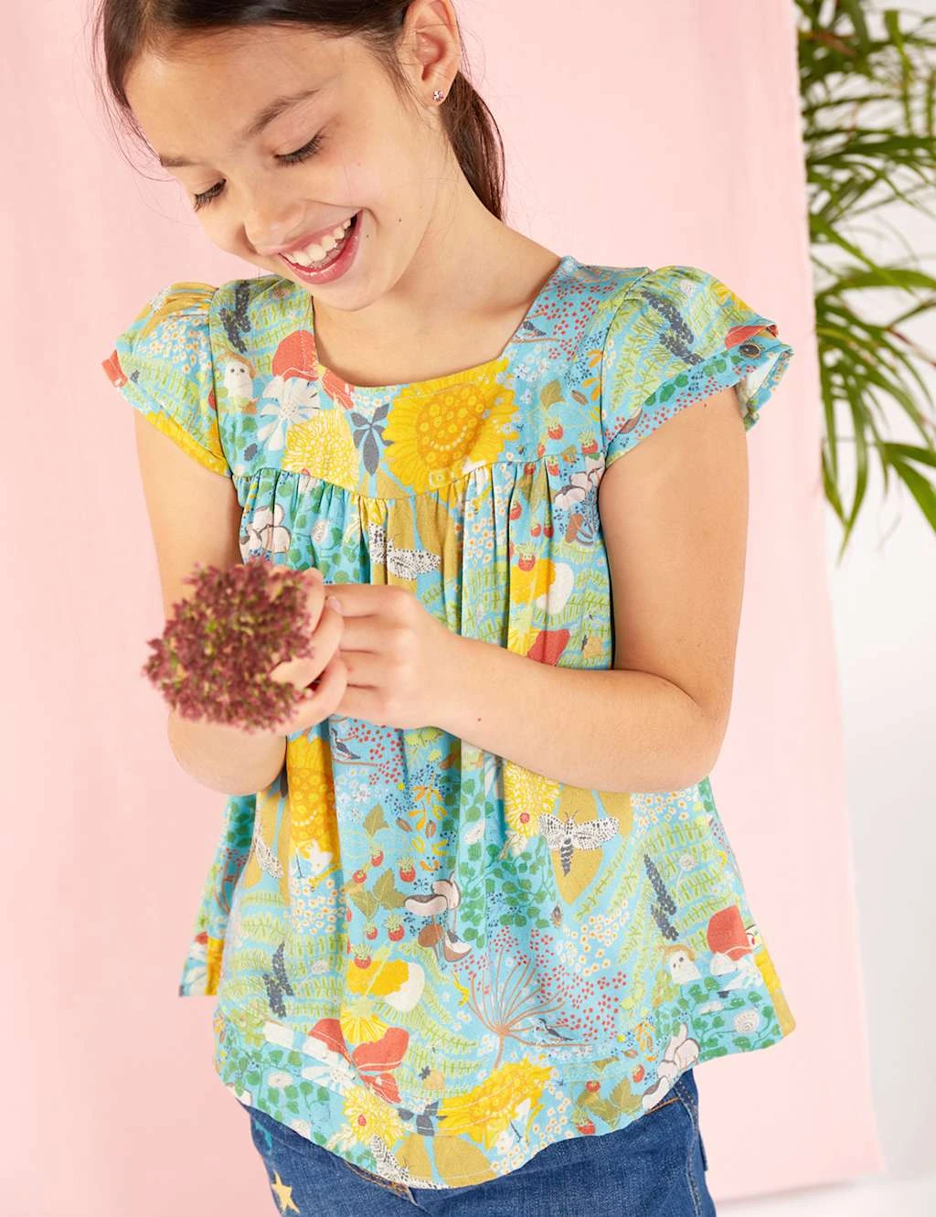 Bring a floral pop to a day of play with this top by Frugi featuring a print inspired by Royal Botanic Gardens. It’s designed in a comfy regular fit, with short sleeves for breathability. A square neck offers easy all-day wear, while pintuck pleats at the hem add dainty detail.