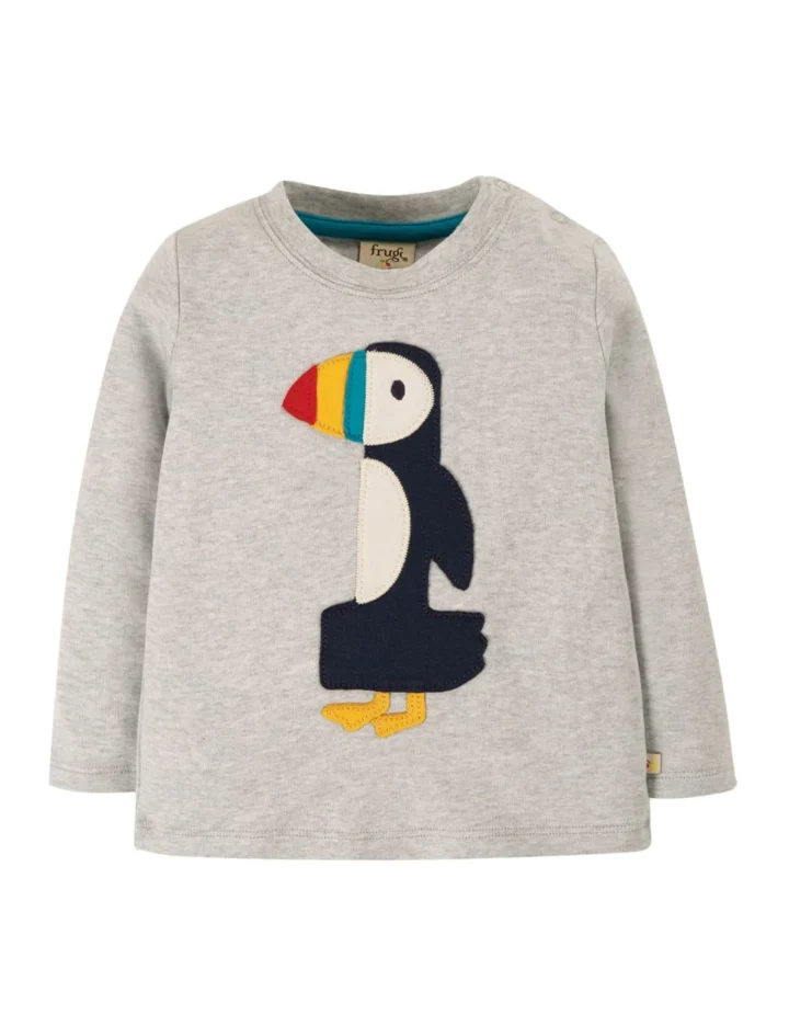 Celebrate their first birthday with this organic cotton top from Frugi. Designed with long sleeves and a round neck with poppers for easy on and off. The top features an adorable appliqué puffin in the shape of the number 1. Made with GOTS certified organic cotton.