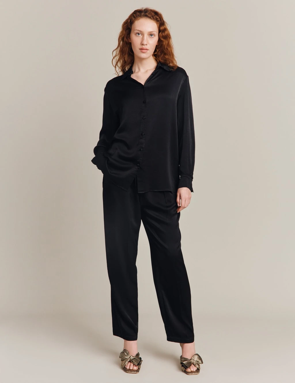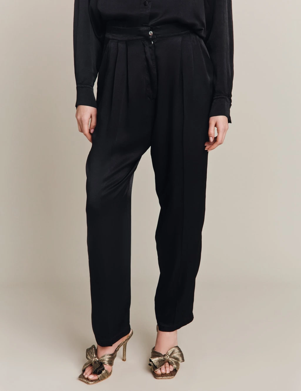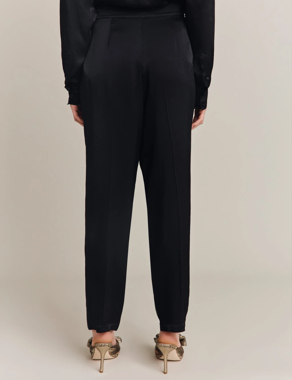 Bring timeless style to your wardrobe with these elegant satin trousers by Ghost. Crafted from a soft and fluid fabric for an elevated look, they’re cut in a tapered fit with a flattering high waistband. A pleated front adds a smart finish. The pair is secured with a button and zip fastening.