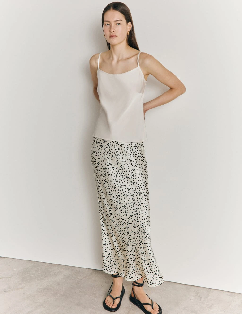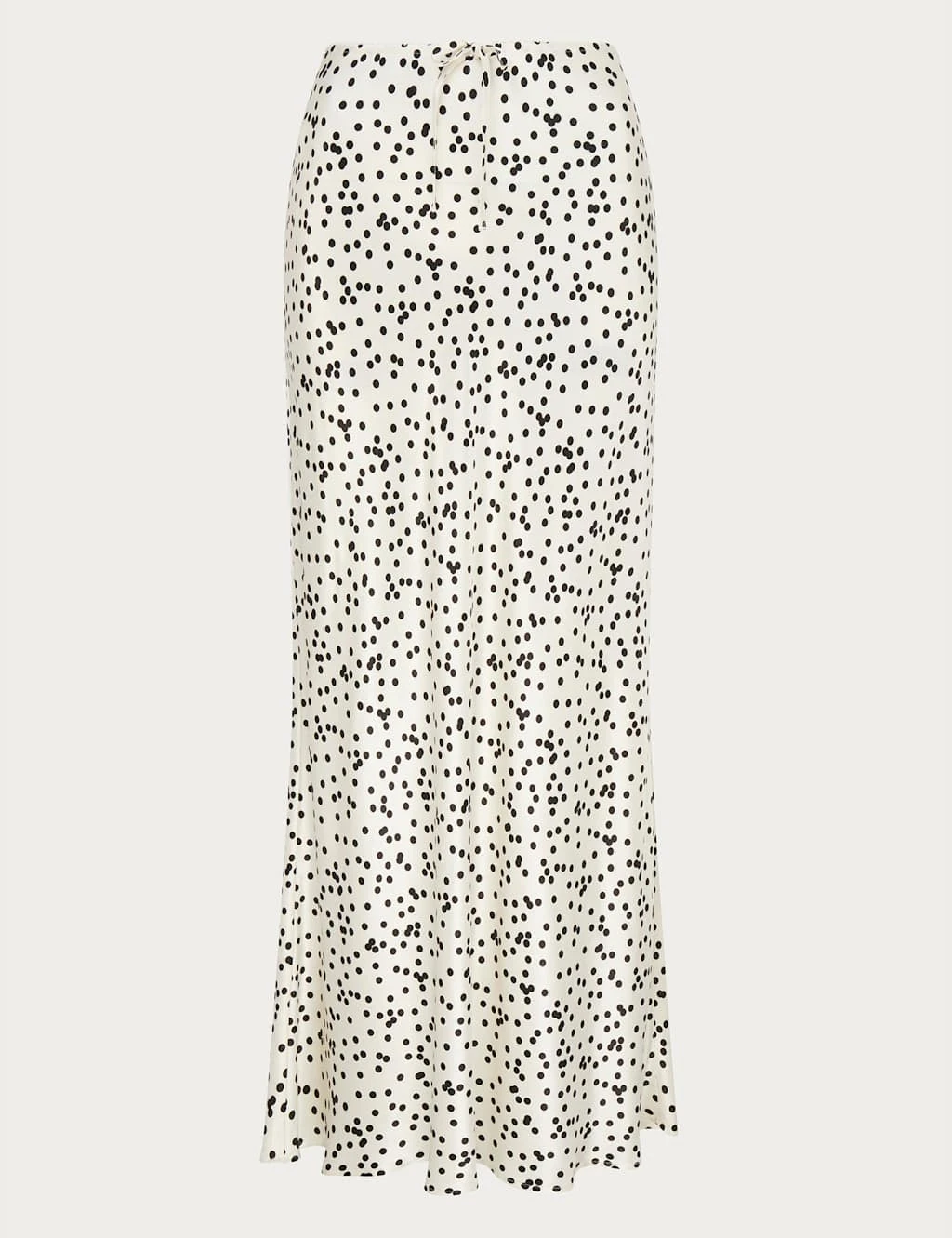 With its crisp polka dot print, this Ghost skirt brings a fresh continental feel to your ensemble. It’s cut in an easy slip shape, with an elasticated waistband for comfort. A skinny tie detail gives fluttery movement, while the hemline sits at a wear-anywhere midi length.