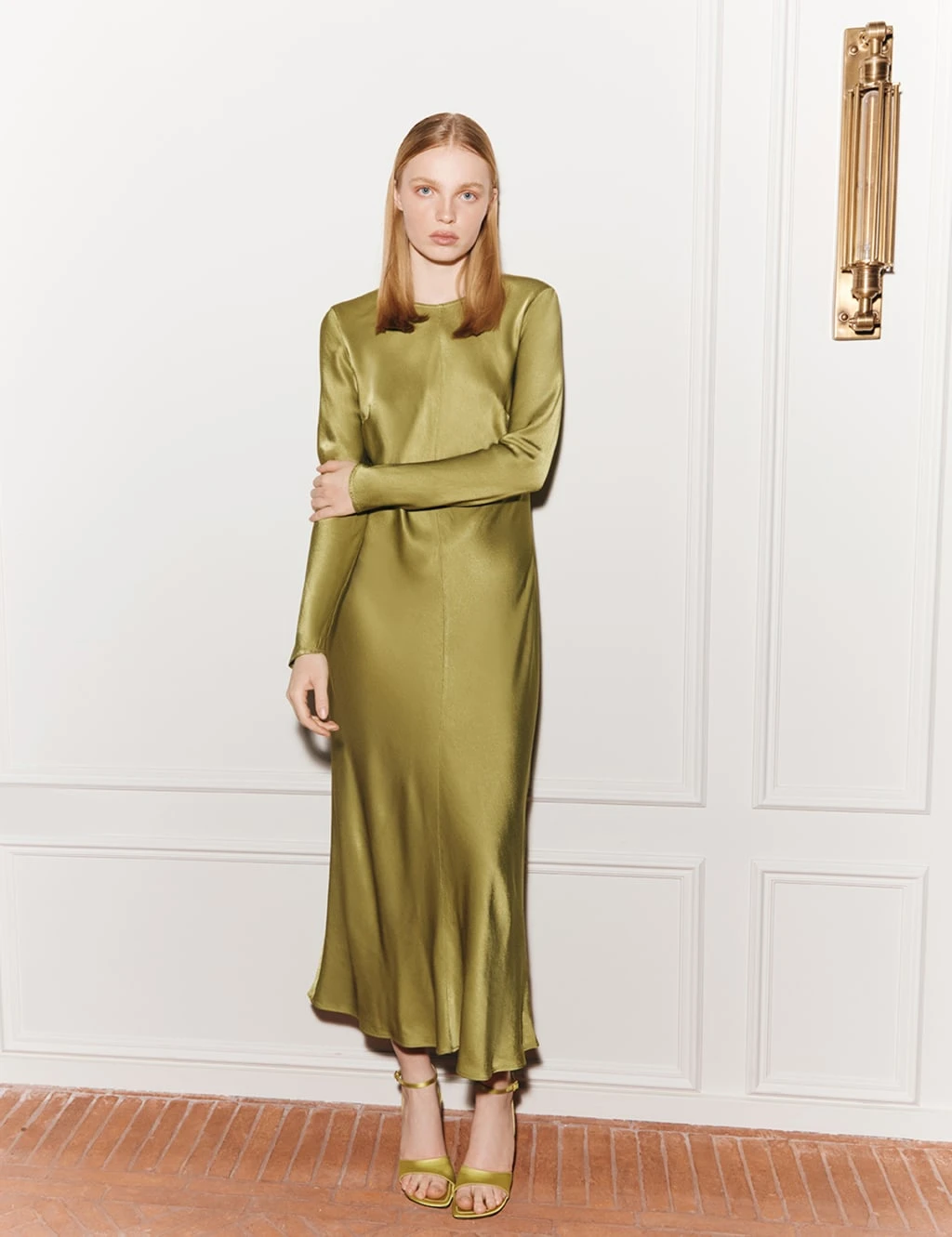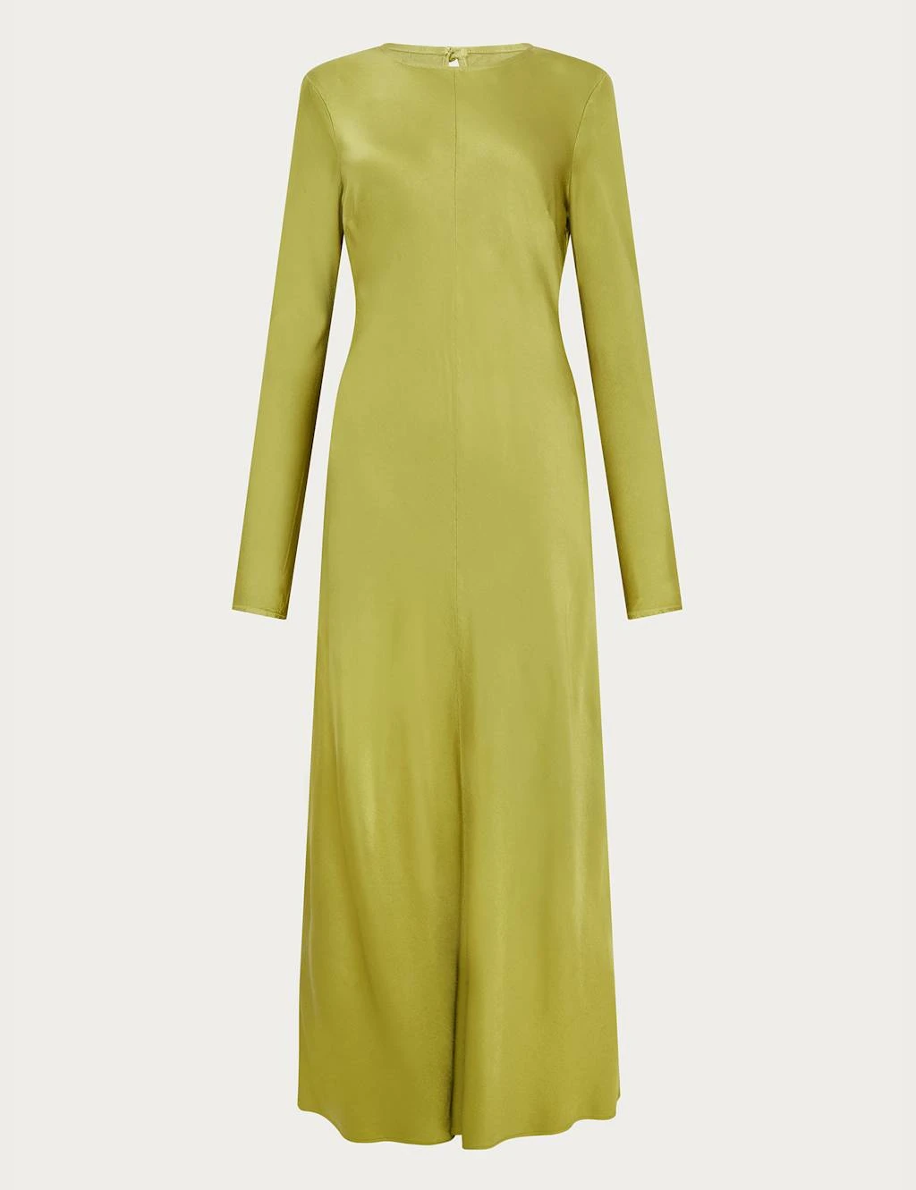 This long-sleeved column dress from Ghost is crafted from smooth satin for a luxurious feel. Designed in an effortless regular fit, it has a round neck and fastens with two covered buttons at the back. The bias-cut skirt falls fluidly to a midi-length hem for an elegant finish.