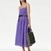 Prepare to turn heads in this elegant swing dress by Ghost. It’s cut in a regular fit with gathers at the shoulders and waistline for a flattering shape. A midi hem and short angel sleeves enhance the feminine feel, while a button-down front beneath the v-neck brings a graceful touch. Made with responsibly sourced viscose.