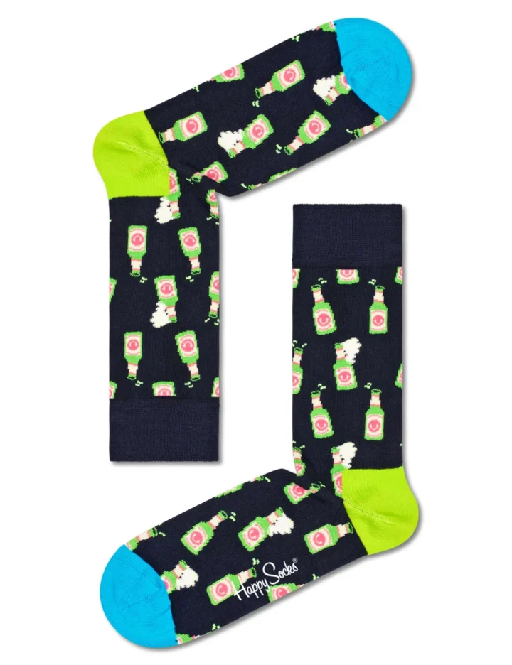 Bottles of fizzing beer lend a playful feel to these cottton-rich Happy Socks. The ankle-length pair is made from breathable fabric with comfy ribbed trims. Pops of contrasting colour on the toes and heels add a bright touch.