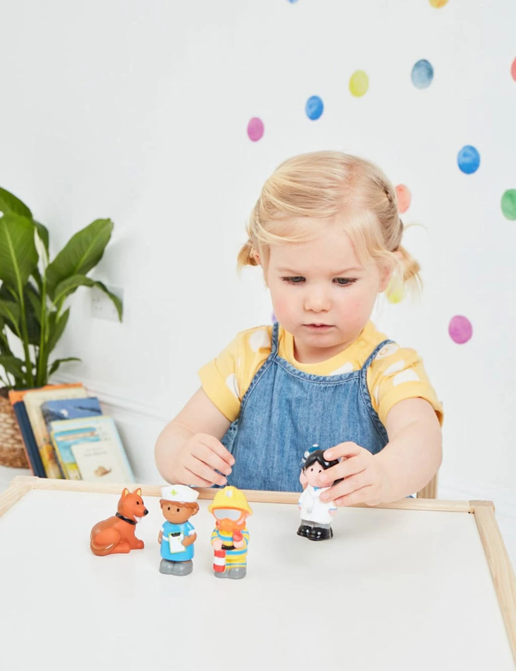 These Happyland Heroes Figures are ready to come to the rescue! Children can use their imagination to make up stories and adventures for these fun characters. The fireman can put out pretend fires, while the policeman and his dog can help catch criminals. The doctor and nurse will ensure their patients feel better. Happyland toys are bright and chunky, and ideal for little hands. They’re designed to inspire young minds and encourage imagination. The set includes a policeman with his dog, a fireman, a nurse and a doctor. Suitable for children 18 months – 5 years.