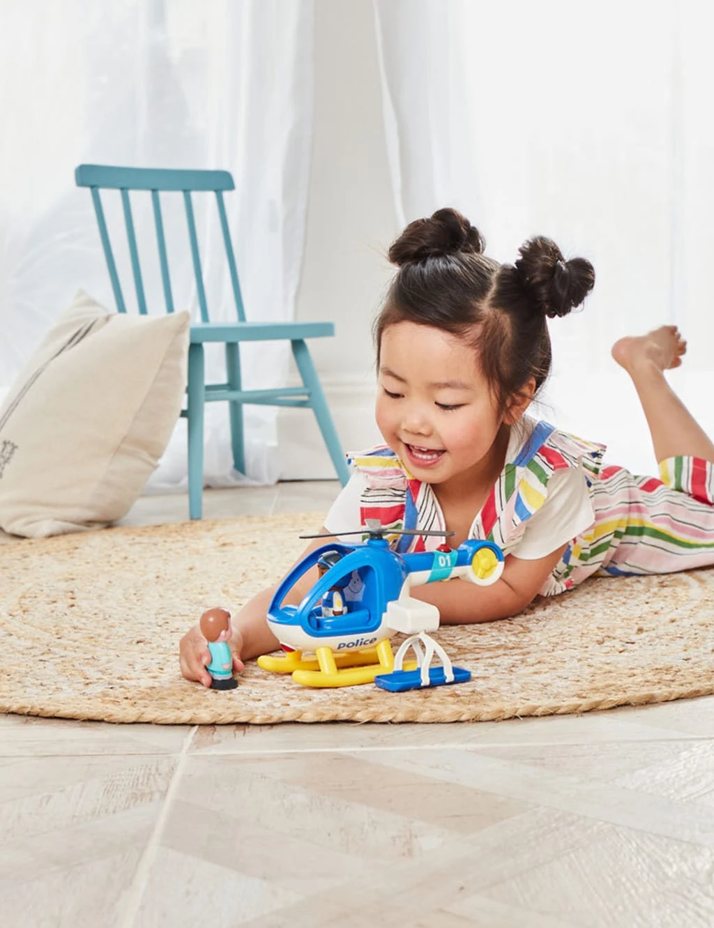 Let your imagination fly up, up and away with this Happyland Lights and Sounds Police Helicopter from Early Learning Centre. The set includes a helicopter with a stretcher, plus a pilot and patient figures. It comes complete with button-activated light and sound effects that will encourage and inspire children’s imaginative play. This set can be combined with other Happyland toys for endless fun. Set your imagination free in Happyland. For 18 months and over.