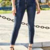 High Waisted Belted Slim Fit Mom Jeans