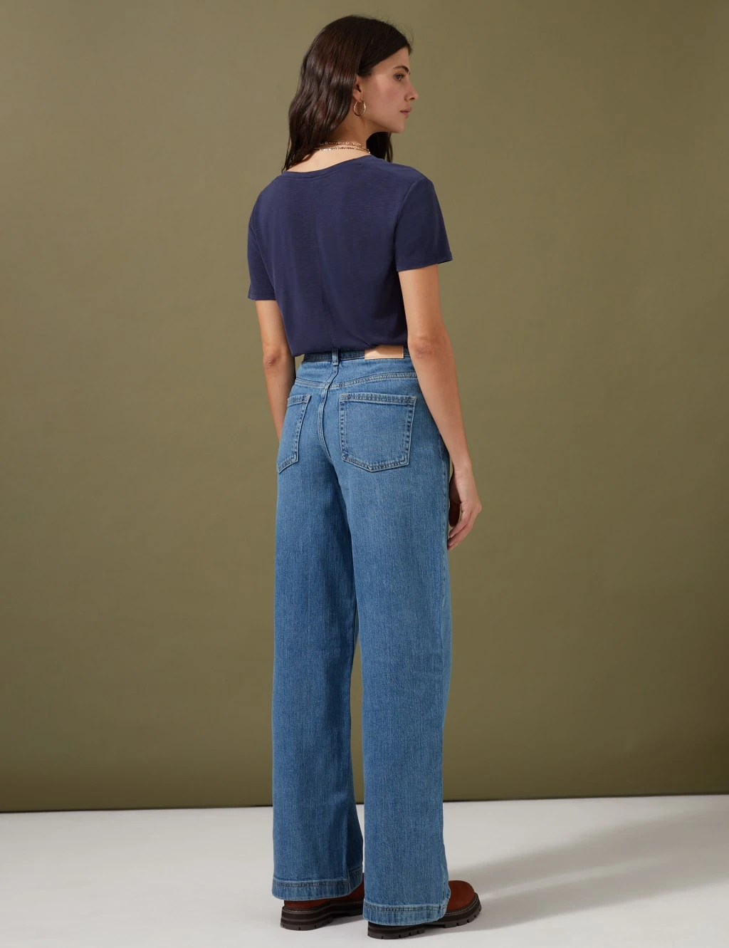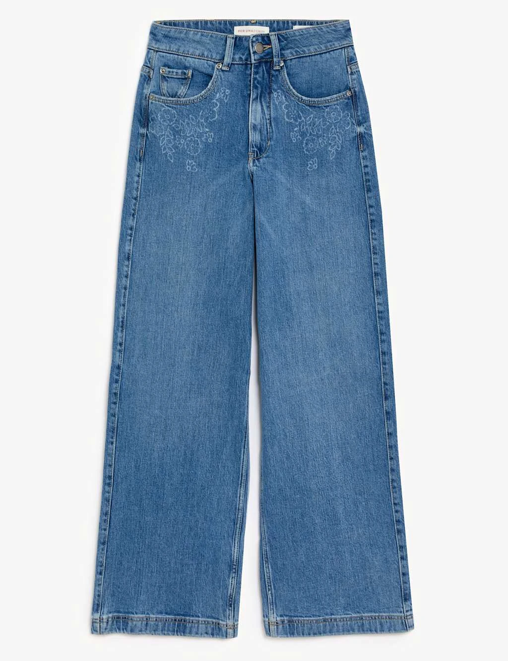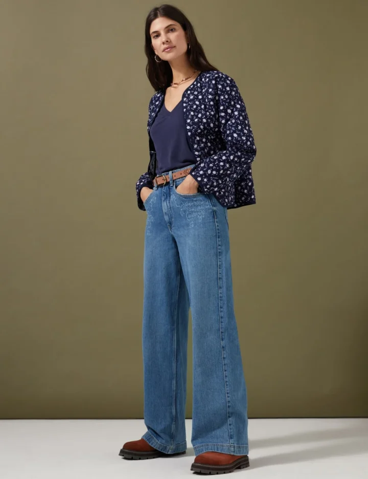 With their on-trend silhouette, these cotton-rich Per Una jeans are the perfect update for your wardrobe. They’re cut wide through the leg, with a neat button and zip fastening at the high waist, back pockets and belt loops. Floral laser designs at the front pockets add a delicate finish and the comfort stretch fabric moves with your body.