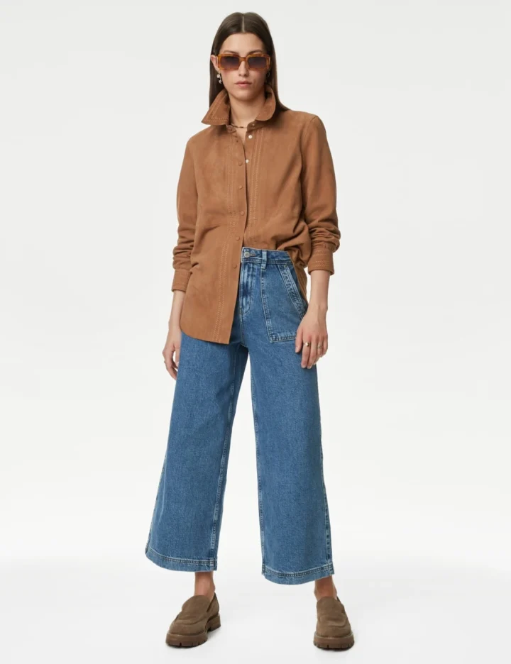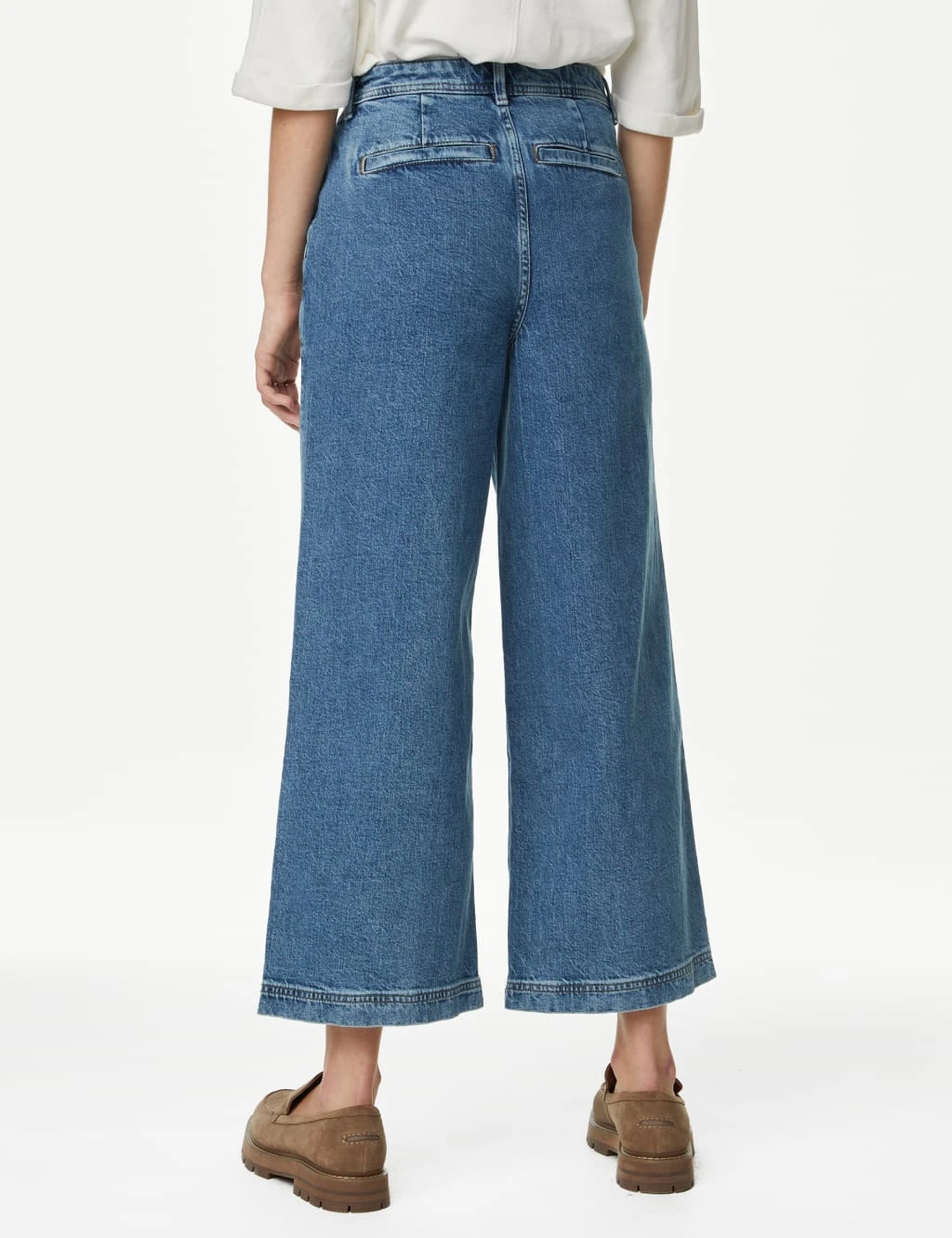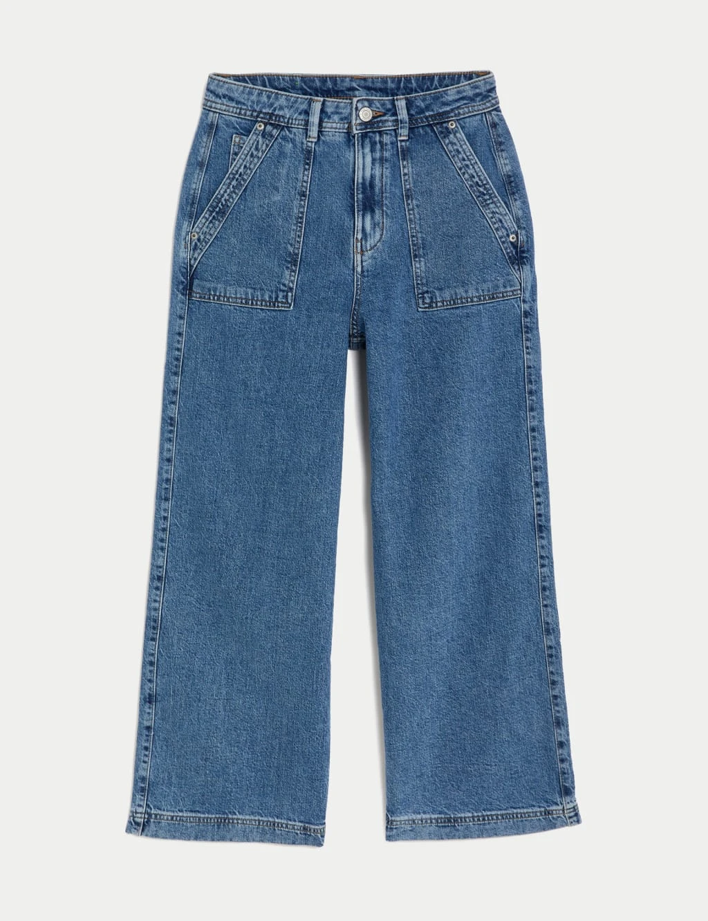 Make a stylish statement in these cotton-rich cropped jeans from our Per Una collection. They’re designed in a flattering wide-leg fit with a figure-accentuating high waistband. Added stretch makes the denim extra comfy for all-day wear. Two front patch pockets and back pockets can hold your essentials. The jeans fasten with a front fly zip and button.