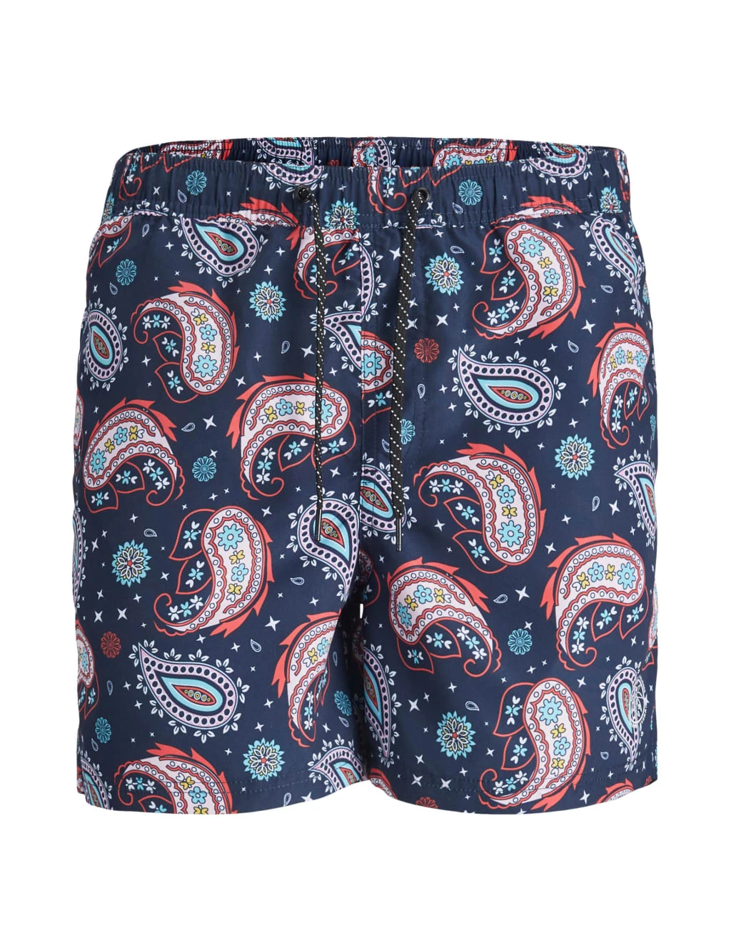 Add a bold look to your poolside style with these swim shorts from JACK & JONES. They feature a comfy drawstring fastening so you can find the perfect fit, plus handy pockets for those small essentials. An all-over paisley print lends a distinctive feel.