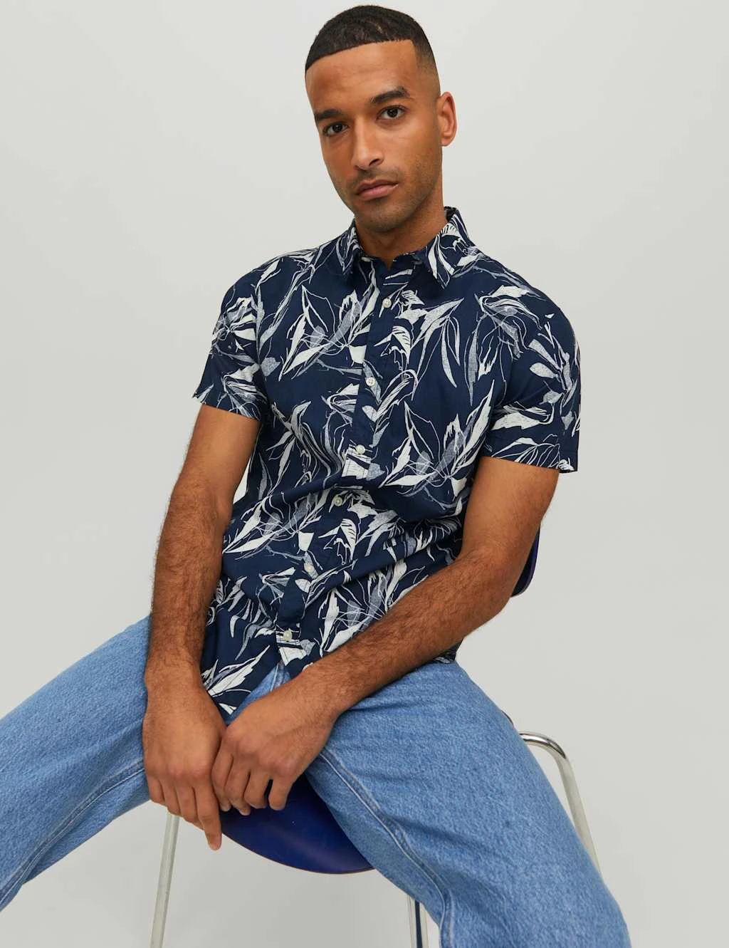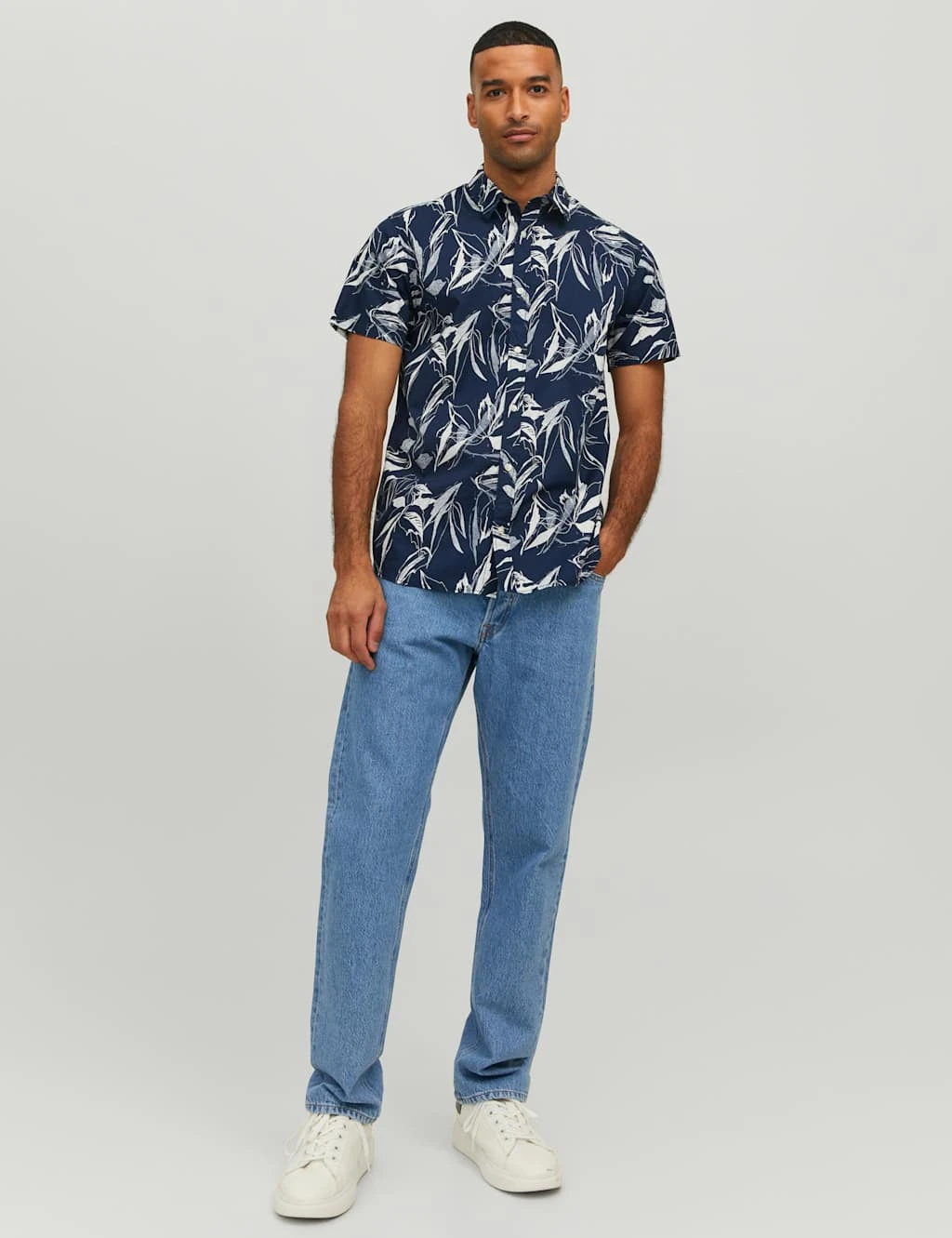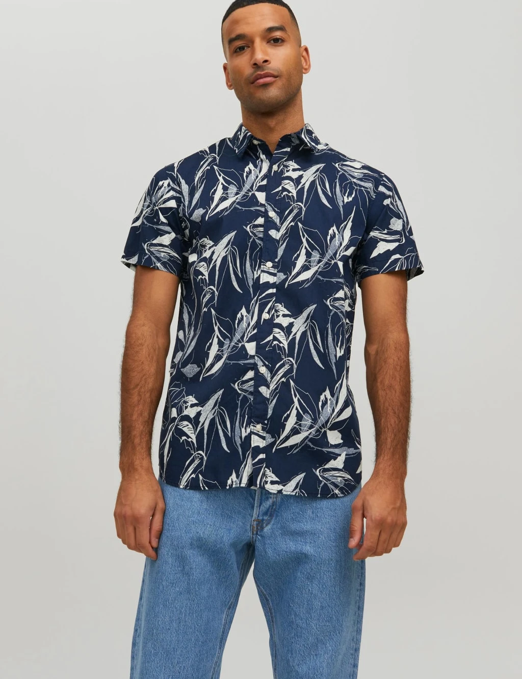 A bold leaf print brings a lively edge to this pure cotton Oxford shirt from JACK & JONES. It’s cut in an easy regular fit with button fastenings and a classic collar. Breezy short sleeves add a summery feel.