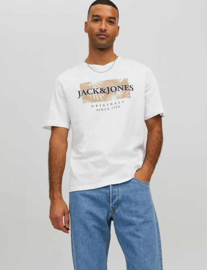 Jack & Jones Pure Cotton Logo Graphic Crew Neck T-Shirt