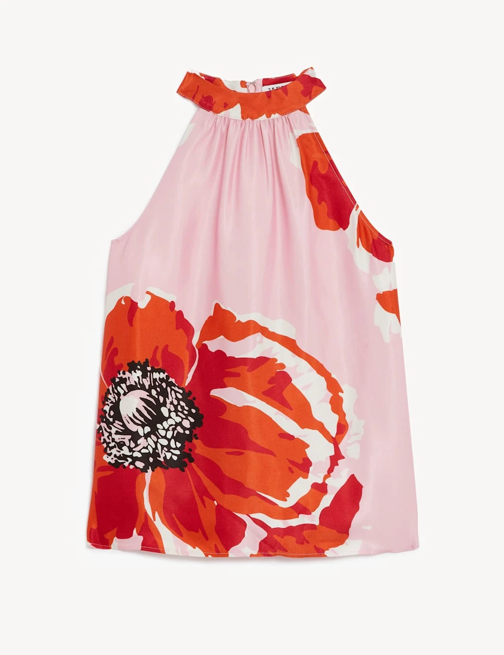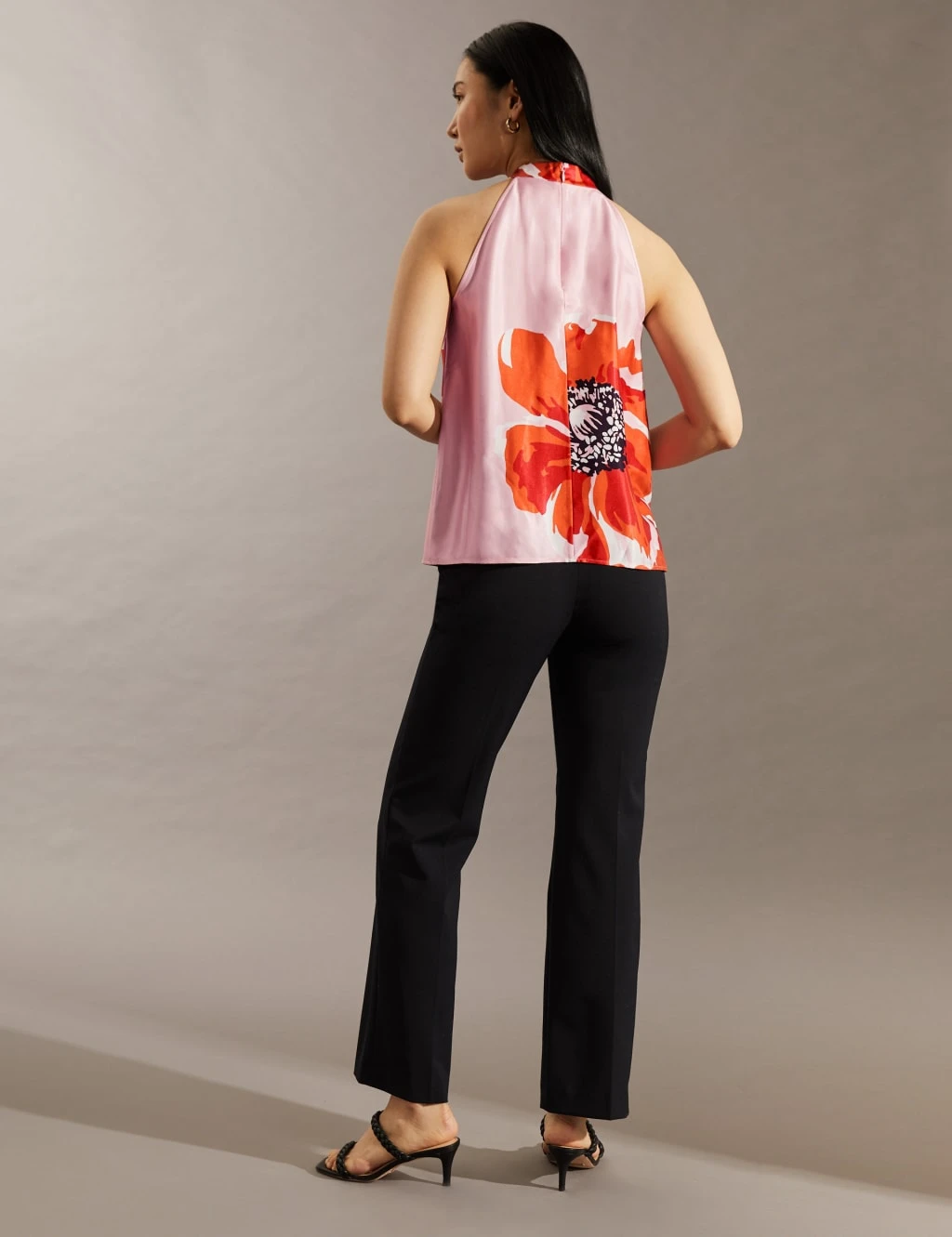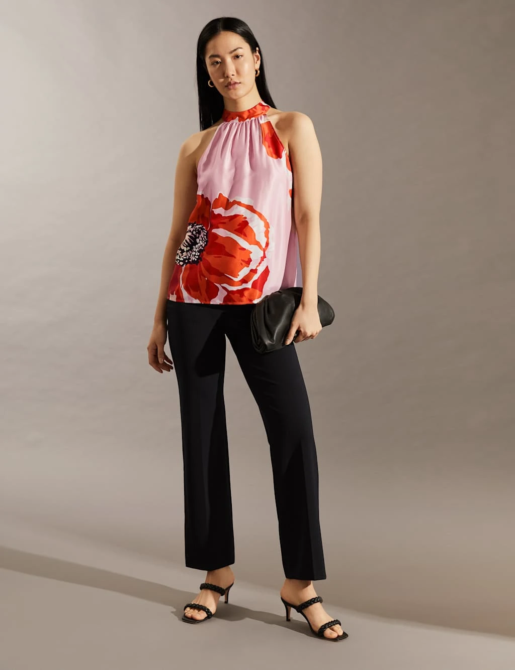 With its flowing fabric and placement floral print, this Jaeger vest top makes a striking choice for summer parties. It’s cut in a comfy regular fit, with a flirty sleeveless shape and a statement halter neckline. Gathers at the neck create a flattering drape through the bodice, while a discreet back zip ensures a neat finish. Team with smart trousers for daytime occasions.