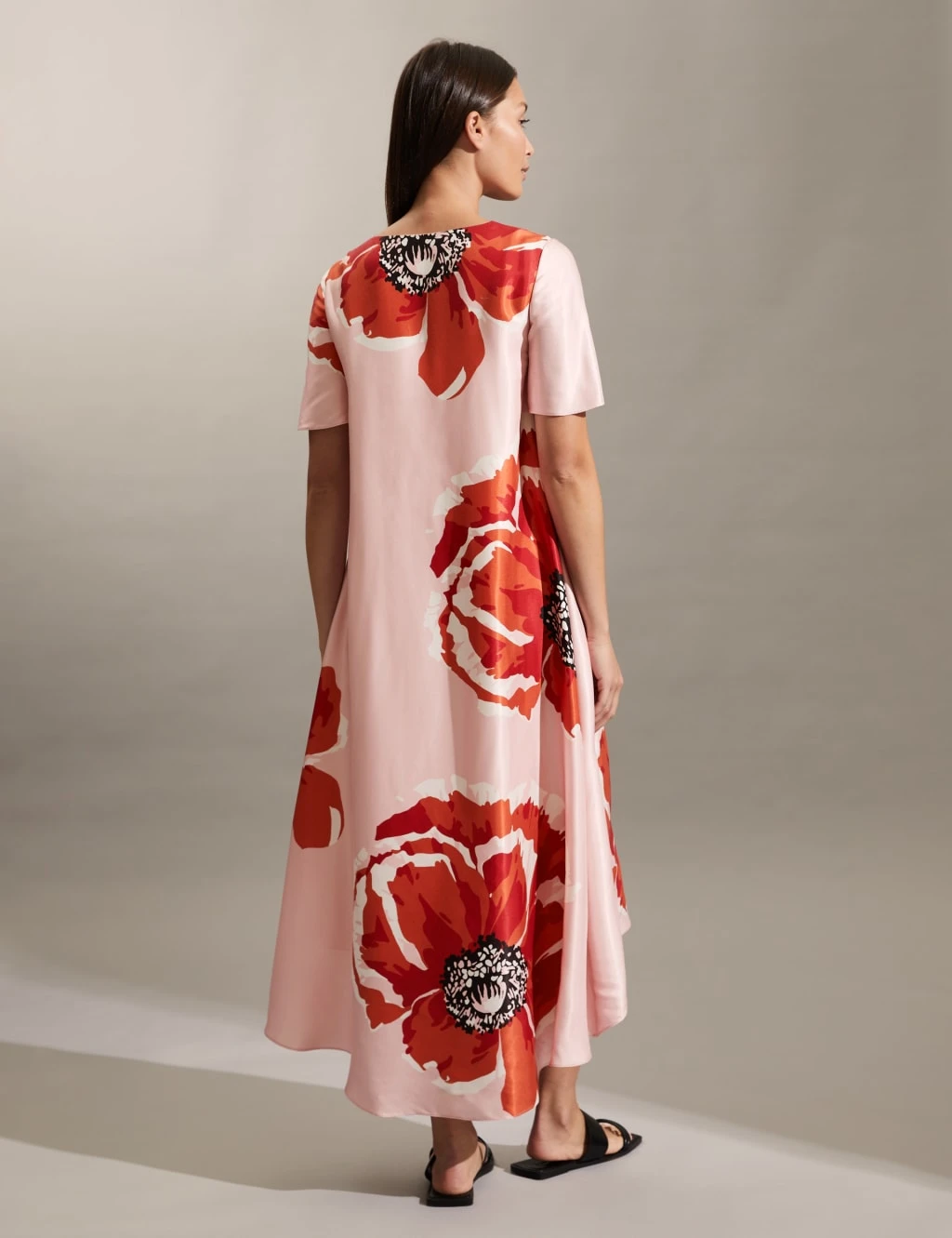 Dress up in effortless style with this flowing midi number by Jaeger. The relaxed-fit dress has a billowy, high-low hem and a flattering v-neckline. It’s complete with short sleeves and a statement poppy print exclusively designed by the brand’s in-house artists. Team yours with espadrille wedges and a complementing clutch bag for an occasion-ready look.